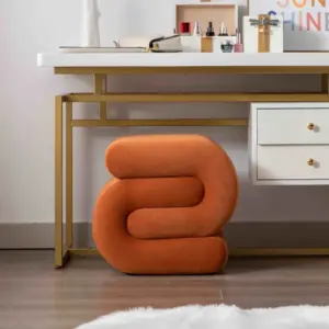 Velvet Ottoman Pouffe Wavy Pouf, S-Shape Wavy Foot Stool, No Assembly Required, Orange