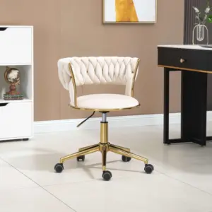 Velvet 360° Swivel Computer Chair with Backrest, 5 Wheels, Adjustable Height, Stainless Base, 62x62x77 cm, Ivory