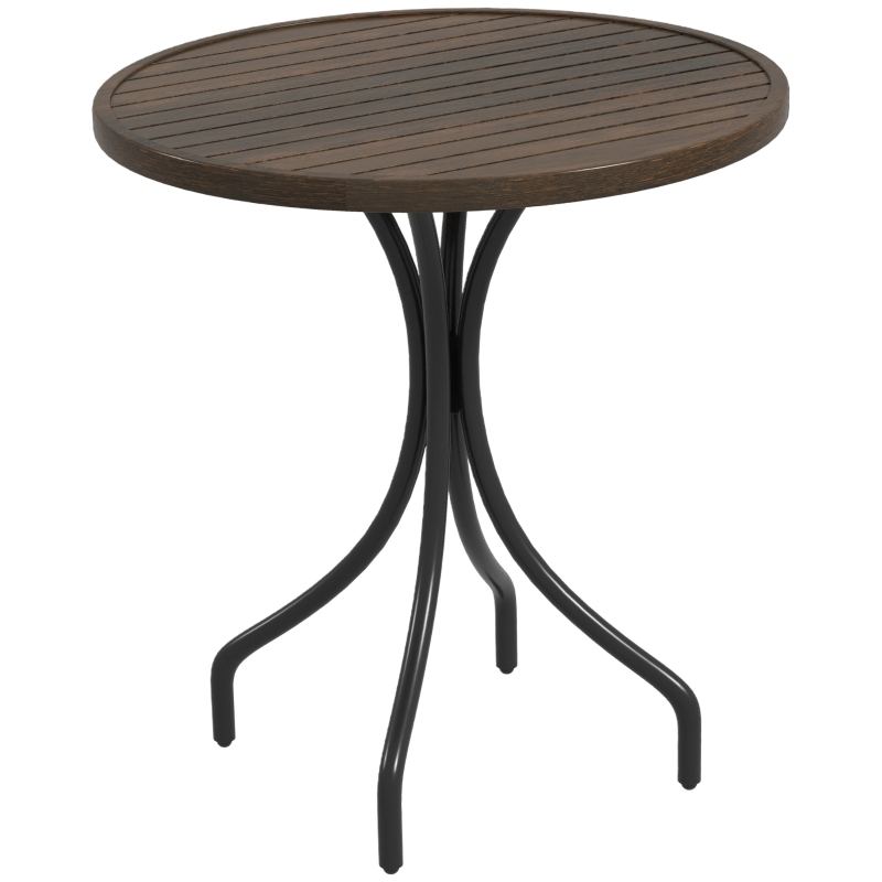 66cm round tabletop: Outdoor dining table offers plenty of room for whatever you want. || Slatted: Outdoor table helps prevent water buildup. || Steel frame: Galvanised with powder-coated finish, garden coffee table is strong and suitable for outdoor use. || Easy to assemble: Bistro table comes with instructions to set up. || Dimensions: 71.5H x Dia. 66cm. Maximum load 30kg. Easy to assemble.