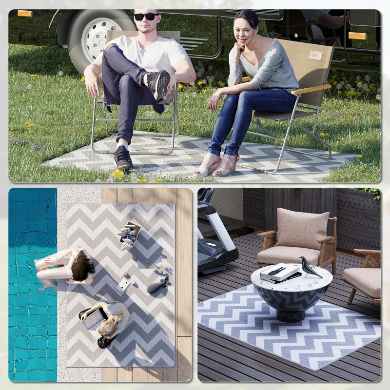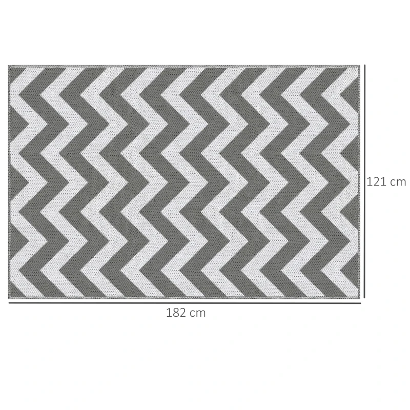 Reversible rug: The double sides of the plastic outdoor rug can be used with different main colour schemes so that you can choose from both sides to your liking. || Portable design: This garden rug is lightweight, can be folded into a compact size and is easy to take outdoors. Suitable for RV road trips, camping, picnic, beach, or garden. || Outdoor ready: Our patio rug is made of 100% polypropylene with sun protection treatment to protect against fading and other sun damage. || Easy maintenance: If the outdoor rug gets dirty, rinse it with water, sweep it with a broom, wipe it with a wet rag and then air it dry. || Dimension: 182L x 121W x 0.3T cm. NOTE: This outside rug is not fireproof, please keep it away from fire.