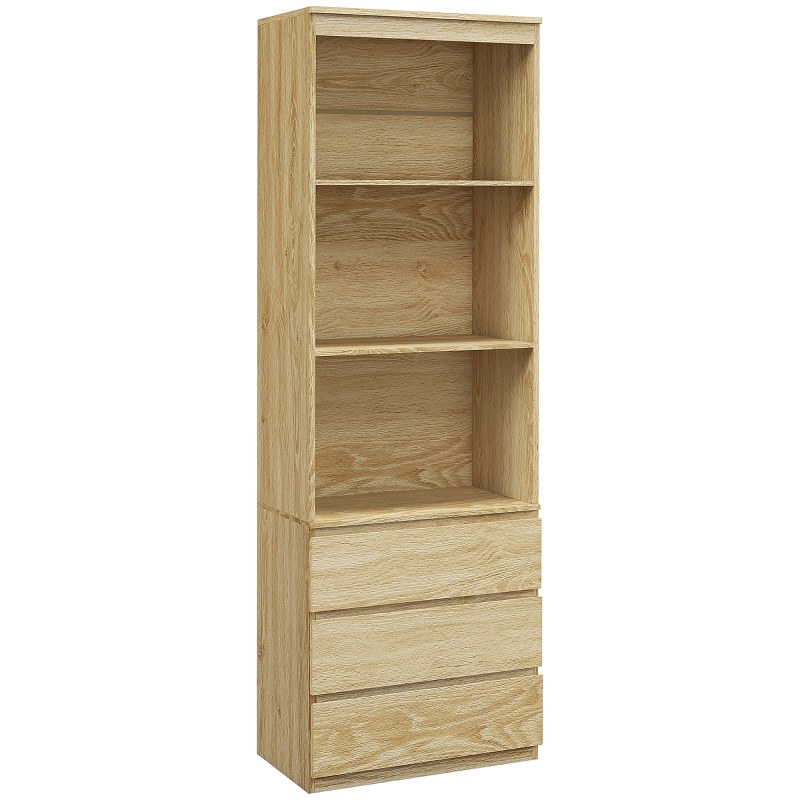 Duo storage: Storage cabinet comes with three upper shelves and three bottom drawers. Plenty of room for display and storage. || Tall narrow bookcase design: Storage unit is great for homes and offices with little room to spare. || Sturdy: Made from particle board, this storage shelving unit is suitable for everyday use. Smooth and protective melamine coating. || Anti-tipping straps: Attach this narrow bookshelf to a wall so it doesn’t topple over. || Dimensions: 180H x 60W x 35Dcm. Maximum load 90kg. Assembly required.