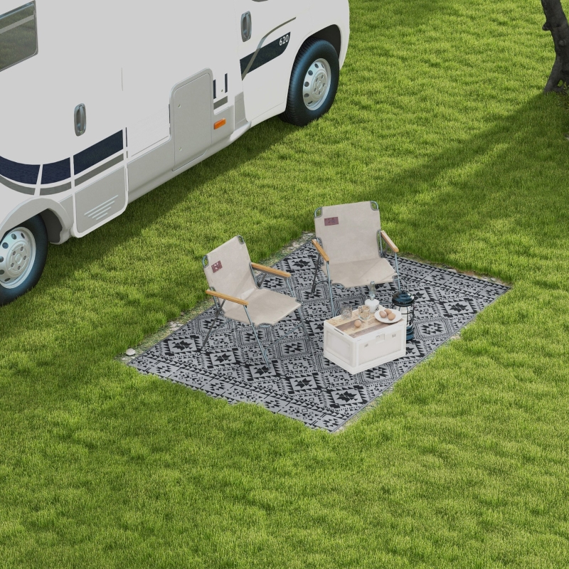 Reversible use: Our outdoor carpet is double-sided with different colour schemes, adding vibrancy to any setting. || Selected material: The waterproof rug is made of 100% polypropylene with solid edging to prevent fraying; features sun protection treatment to prevent fading. || Easy to carry, with included bag: Lightweight and compactly foldable, the patio rug is easy to take everywhere. Great for car or camper travel, camping trips, a day at the beach, or just relaxing in your own garden. || Easy maintenance: Rinse with water, sweep with a broom, wipe with a wet rag and air dry if this garden rug gets dirty. || Dimension: 182L x 274W cm. NOTE: This garden carpet is not fireproof, please keep it away from fire.