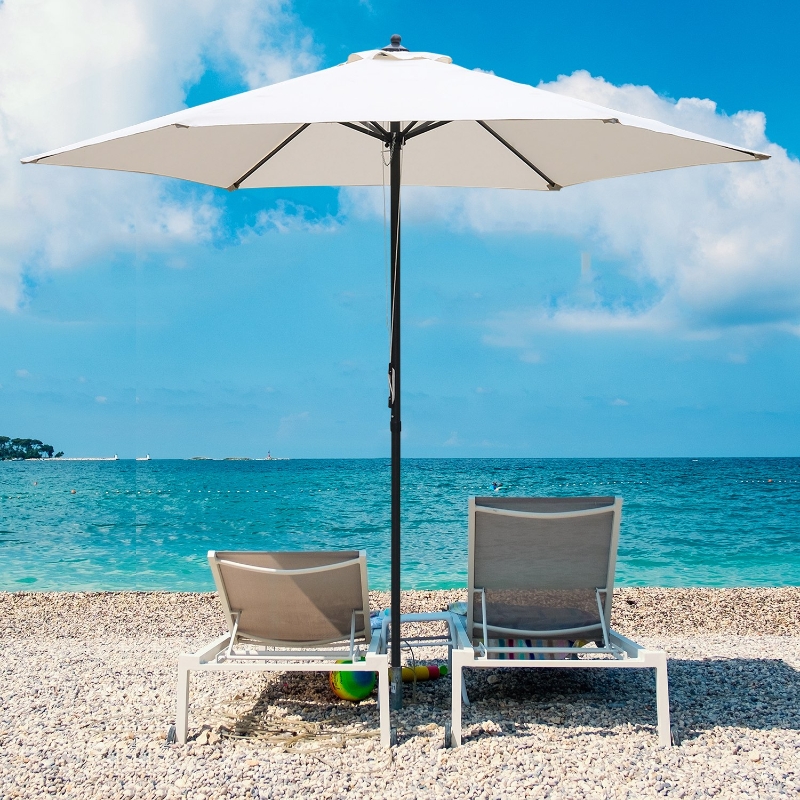 Classic, stylish design: Our patio parasol will look great in your garden for years to come. || Large shade surface area: This garden umbrella provides Φ2.8m of shade to keep many people protected. || UV and water-resistant shade: Keeps outdoor parasol looking fresh and clean. Do not leave in heavy rain. || Easy to use: Manual pull mechanism lifts the umbrella for garden table up and pulls it down. || Strong steel pole: Keeps the sun parasol stable and secure. Dimensions: Φ2.8 x 2.4m. Pole: Φ38mm. EASY ASSEMBLY REQUIRED. BASE NOT INCLUDED.