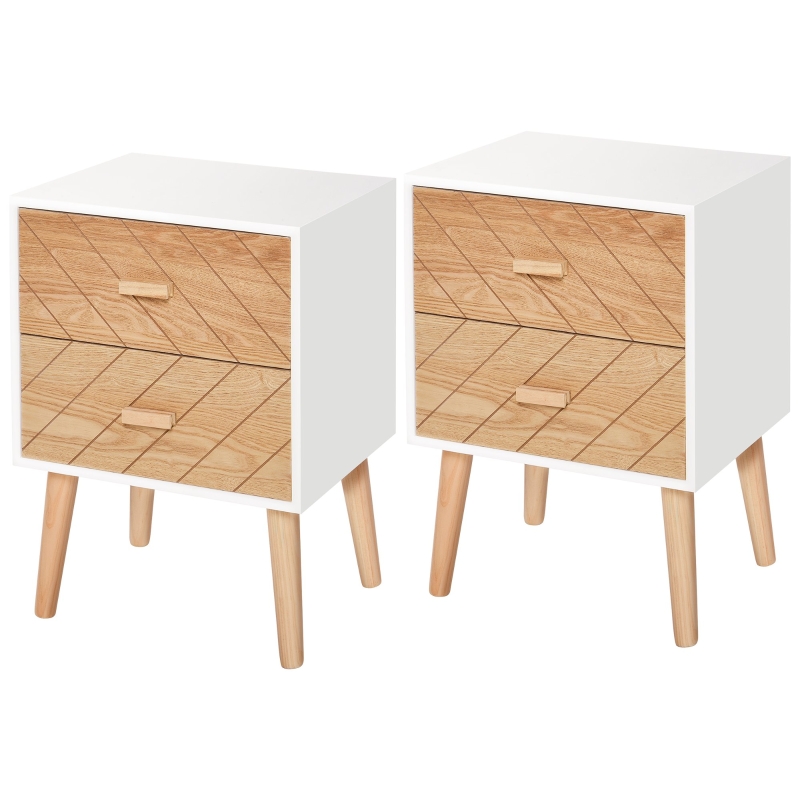 Nordic style: Classic puristic retro Scandinavian style. Can be used as a sofa side table, end table or corner table. Blends seamlessly with any contemporary bedroom, living room or entryway. || Multi-use chest for a tight space: Go tall rather than long for saving space. Perfect as a bedroom dresser, side table, or organiser for small rooms. || 2 slide-out drawers: 2 slide-out drawers with handles provides lots of storage space for your pyjamas, underwear, socks, camisoles, shorts and other home necessities. Flat top deck allows for photo and decorations display. || Sturdy structure: Constructed of durable MDF material with anti-slip pine wood legs, this bedroom chest is sturdy enough for long lasting use and can hold up to 20kg. || Dimensions: 40L x 30W x 55.5H cm, Drawer Inner Size:36L x 22.5W x 13.5H cm, Weight Capacity: 20kg