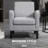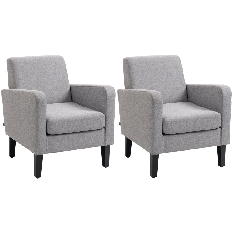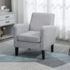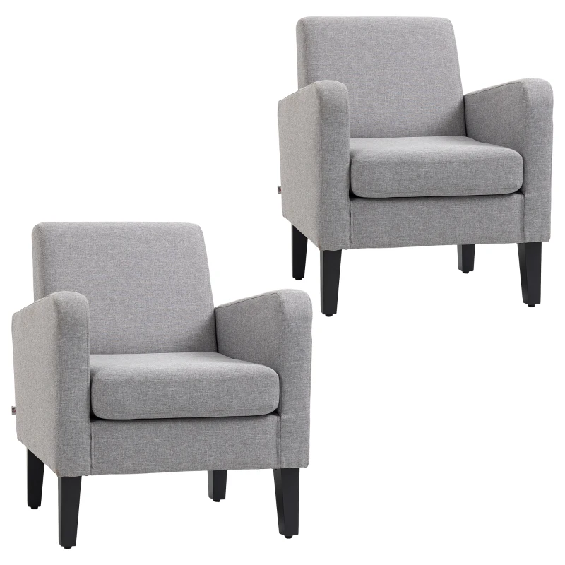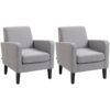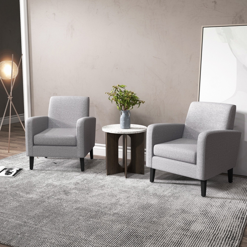 Best 2 Pieces Modern Armchairs with Rubber Wood Legs, Upholstered Accent Chairs, Single Sofa for Living Room, Bedroom, Light Grey