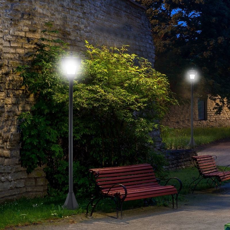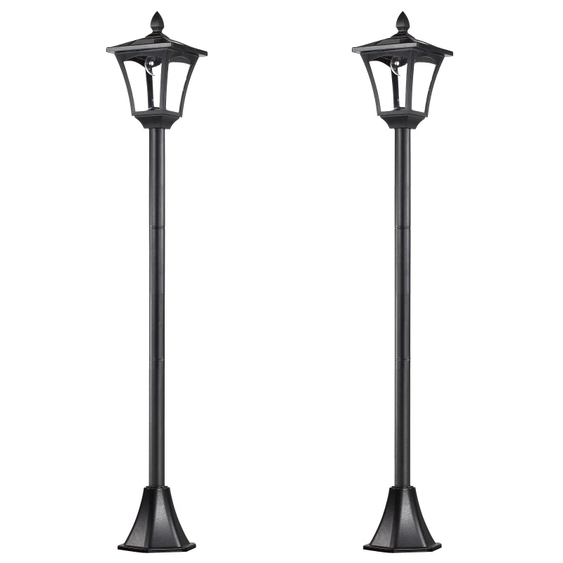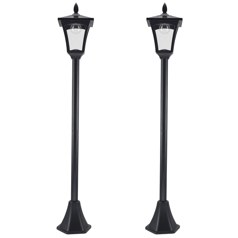 Set of two: Removable LED light can be dimmable with power control while offering customizable illumination. || Intelligent light: Automatic light sensor activates at dusk when UV luminance is lower than 3 LUX. || Continuous lighting time: Lights up to 6 hours when fully solar energy charged. || For outdoor: Stainless steel construction with a plastic base and IP44 rated materials || Dimension: 18L x 18W x 160Hcm. Assembly Required.