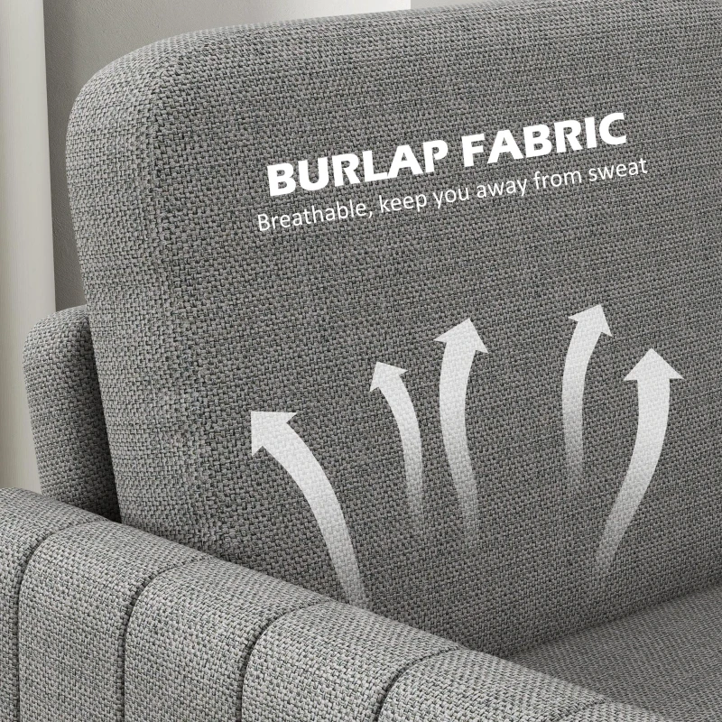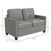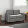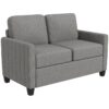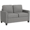 Simple, modern design: Boxy shape of loveseat sofa, in a neutral colour. Looks great in plenty of home and office spaces – as a living room sofa, a bedroom sofa, and so much more. || High-density foam padding: Also with stretchy pocket spring, ‘S’ springs and elastic bands, this is a super comfortable two-seater sofa. A great small sofa you’ll love relaxing into, whenever you want. || High back and arms: Fabric sofa supports your body as you sit and relax. || Linen-feel fabric upholstery: A smooth, soft finish for this settee. Side line indents on both arms add a subtle point of difference. || Dimensions: 87H x 135W x 74Dcm. Maximum load 300kg. Assembly required. Made from flame retardant materials.