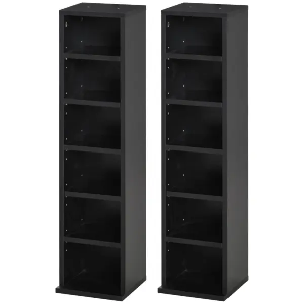 Best 204 CD Media Display Shelf Unit Set of 2 Blu-Ray Tower Rack w/ Adjustable Shelves Bookcase Storage Organiser, Black