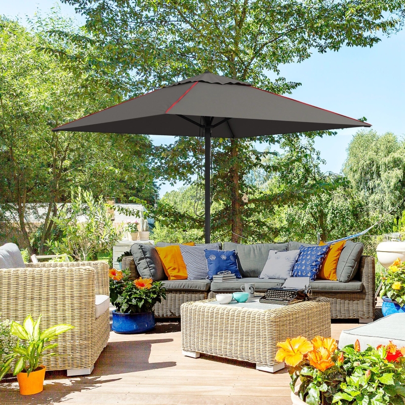 Best 215cm Square Canopy Parasol, with Contrast Piping – Grey/Red