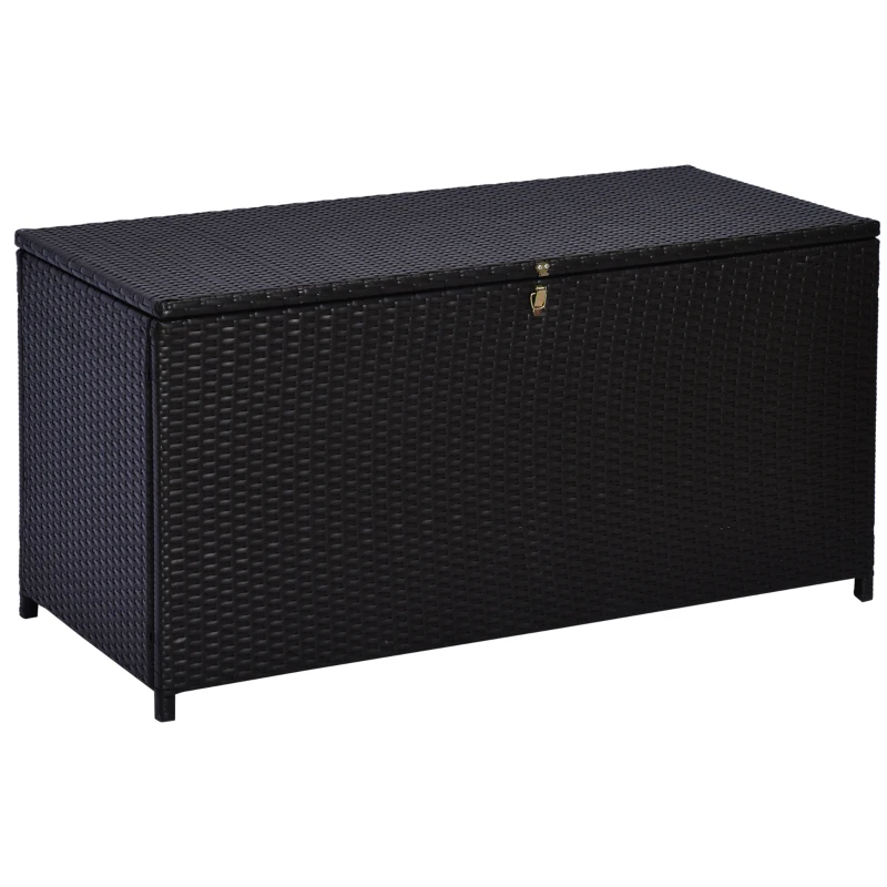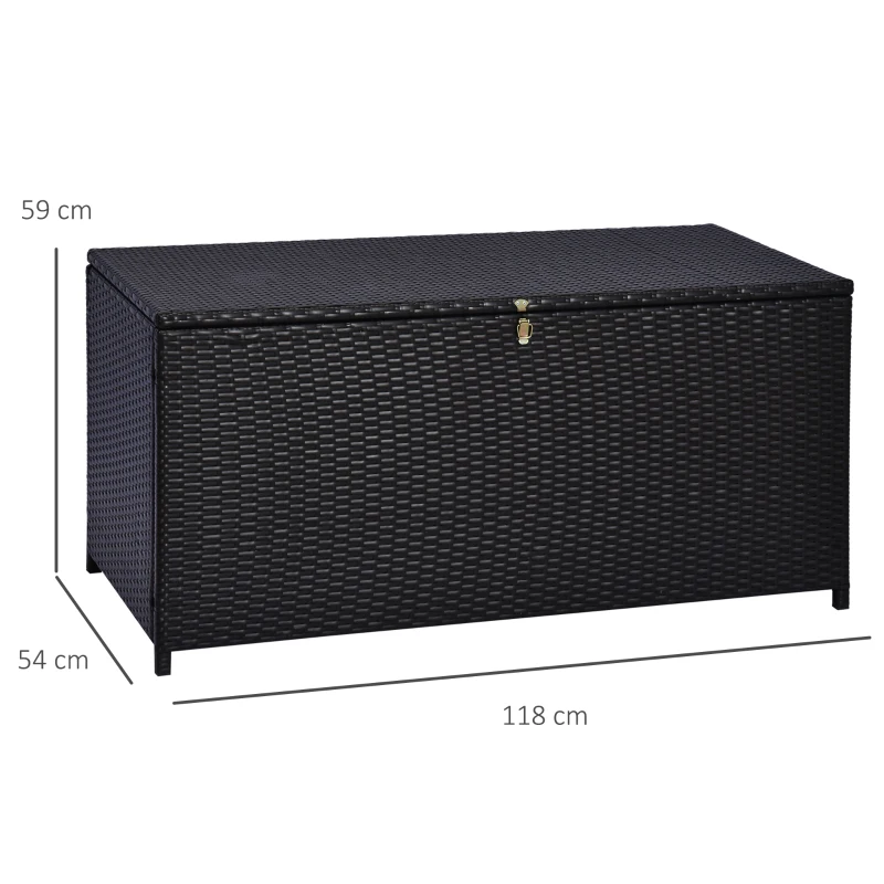 284 L capacity: Ensures valuable space for seat covers, cushions and further garden utensils || Rattan construction: this patio outdoor storage box withstands both the test of time and weather elements || Hydraulic system: Make it easy to close and open while holding weights up to 25kg on top and 40kg inside || Metal frame: It is made up of solid metal pipe and PP board ensuring a long lifetime || Overall Size: 113L x 45W x 56H cm. Assembly Required.