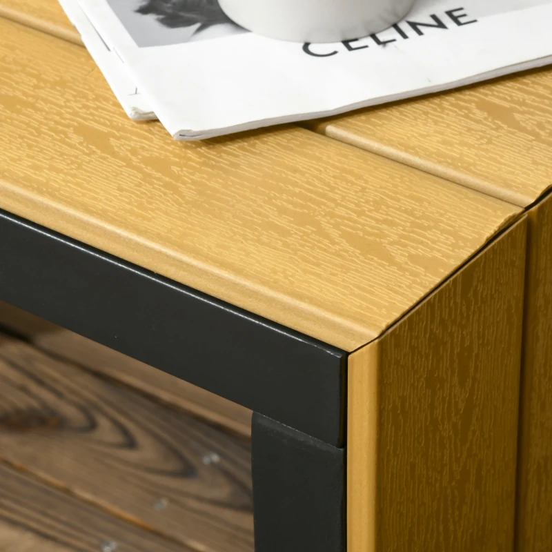 Three-piece garden sofa set: Comes with a corner loveseat, armless loveseat and matching table. Bring everyone together outdoors. || Wood-effect table: Made from plastic for a tough, durable piece, a place to keep things close to you. Wipes clean easily. || Padded cushions: Keep comfortable as you relax into this outdoor corner sofa set. Removable and washable covers. || Aluminium frame: Powder coated for extra strength, a strong structure. || Dimensions: Corner sofa: 150W x 78D x 72Hcm. Armless sofa: 150W x 78D x 72Hcm. Table: 70W x 40D x 40Hcm. Assembly required.