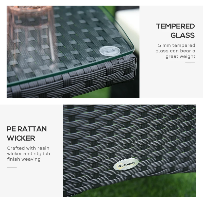 AFFORDABLE LUXURY: Durable, all-weather and long-lasting, this modern 3pc bistro set adds the perfect place to gather and relax. A great low-cost outdoor patio furniture solution for backyards, gardens, balconies, poolside, sunrooms, and more! || COMFORTABLE SEATING: Experience the ultimate in relaxation with extra-deep modern seating that lets you sink into comfort. Thick, bottom-supporting cushions add to the luxury and keep you and your guests comfortable and content extended periods of time. || DURABLE CONSTRUCTION: Woven of durable, low-maintenance material that replicates the look and feel of traditional wicker but is more resistant to sun, rain, heat and cold. Hidden underneath is a rust-resistant steel frame to provide durable and lasting support. || WEATHER RESISTANT: Made of PE rattan wicker that is UV-resistant to prevent fading and cracking caused by sunlight. The powder-coated steel frameprevent rust and other corrosion. || LOW MAINTENANCE: The resin coated rattan wicker is weather-resistant and easy to clean. Simply spray off with the garden hose. The UV-resistant polyester cushion covers can also be removed, and machine washed as needed.