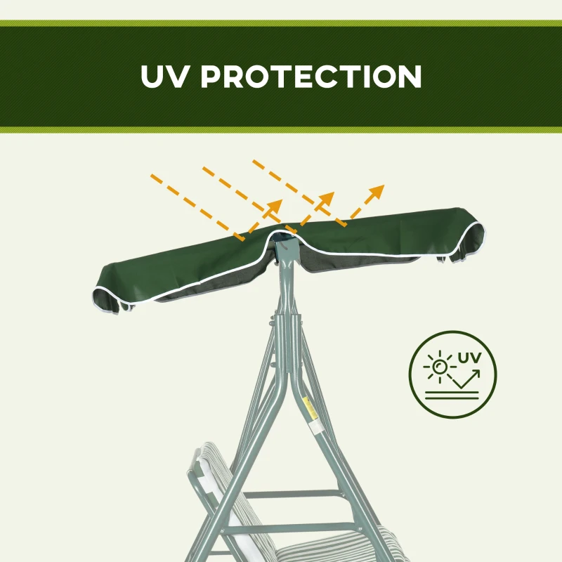 Three-seater: Stylish garden swing chair to enjoy outdoors with friends or grab lots of room to yourself ideal for those lazy afternoons. || Steel frame: Powder coated for extra strength – a strong and supportive core for the 3 seater swing seat. ‘A’ shaped legs for balance. || Tilting canopy: Set the top of swing seat to a position you want – canopy shields against sun glare, UV rays and mild rain. || Cushion seat: Keeps you comfortable. High back of the swing bench gives your body support. || Dimensions: 153H x 172L x 110Wcm. Seat: 48H x 130L x 46Wcm. Maximum load 240kg. Assembly required.