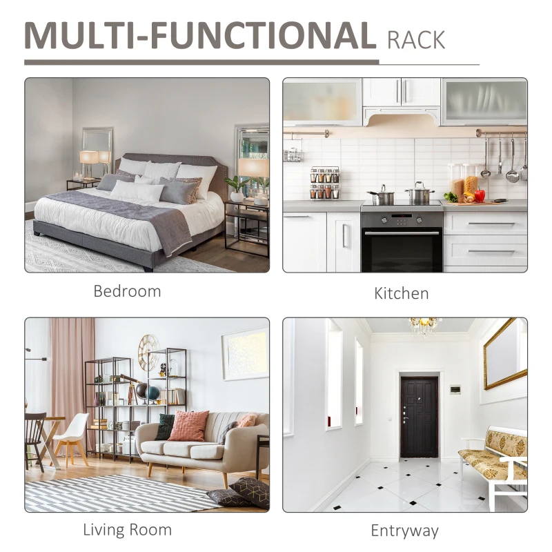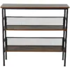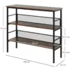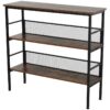 STURDY METAL FRAME: Ensures a strong and durable foundation which will provides reliable everyday use. Black and dark brown colouring creates an industrial style look. || THREE SHELVES: Plenty of display and organisation space, making it ideal for use in the home and office. || PARTICLEBOARD WORKTOPS: Melamine surface finish for protection against everyday use and easy cleaning. || BACK RACKS: Mesh in design for airflow, they prevent items falling off behind. DIMENSIONS: 92H x 100L x 32Dcm. Shelf: 96Lcm. || MAXIMUM LOAD 60KG. ASSEMBLY REQUIRED.