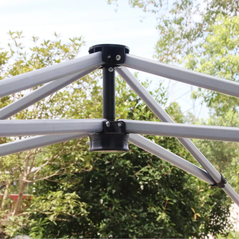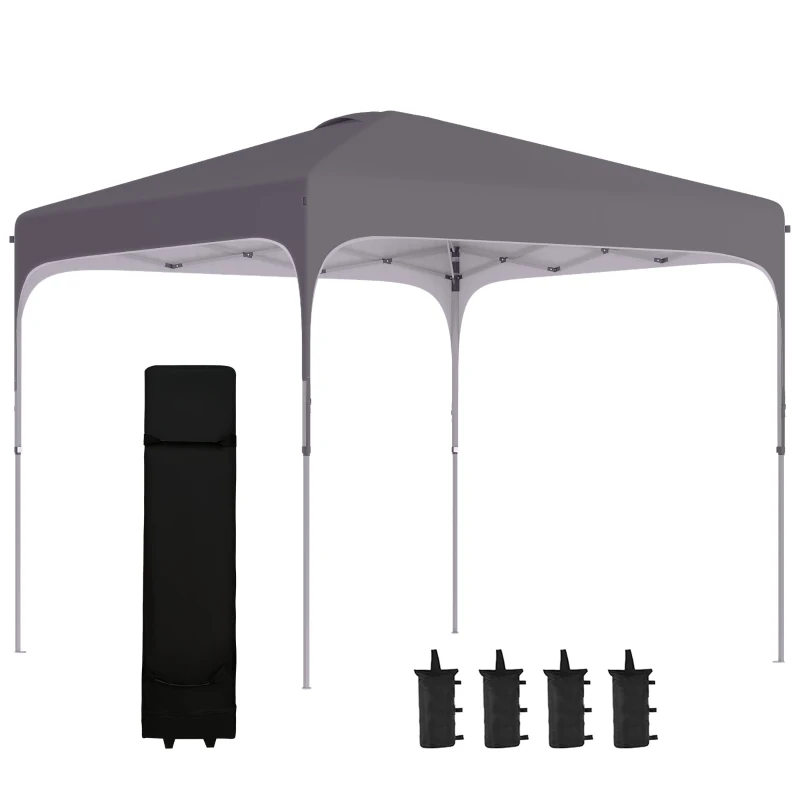 EASY TO SET UP & PORTABLE: Just push it upward, pull the fabrics over the frame, stretch the legs and you’re done. Furthermore, a foldable steel frame makes the pop up gazebo easy to carry and store in the handy bag with wheels || MULTIPLE STABILIZATION SETTING: Contains ground nails, ropes, and 4 sets of sandbags to improve the stability of the garden gazebo during use. Top vents design is designed to provide excellent airflow and provide stability in windy conditions || HEIGHT ADJUSTABLE: The clever plastic snap design allows you to adjust the camping gazebo height at will to choose the height that best suits your needs. (Recommended to adjust inside the 4 grade scale, 10cm between each quarter degree) || MATERIAL AND PERFORMANCE: The garden shelter roof is made of improved splash-proof UV50+ Oxford fabric that will effectively protect you from the sun. The foldable structure of our pop up canopy tent is made of coated steel to offer you good stability || DIMENSIONS: Standing: 290H x 305L x 305Wcm. Folded: 128H x 25L x 25Wcm. Note: For the longer use of the product, we do not recommend using the gazebo in bad elements. 2-3 people required to build it.