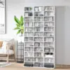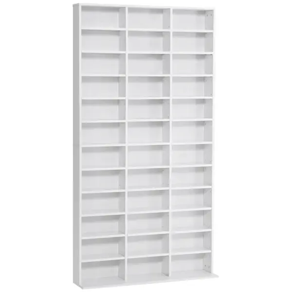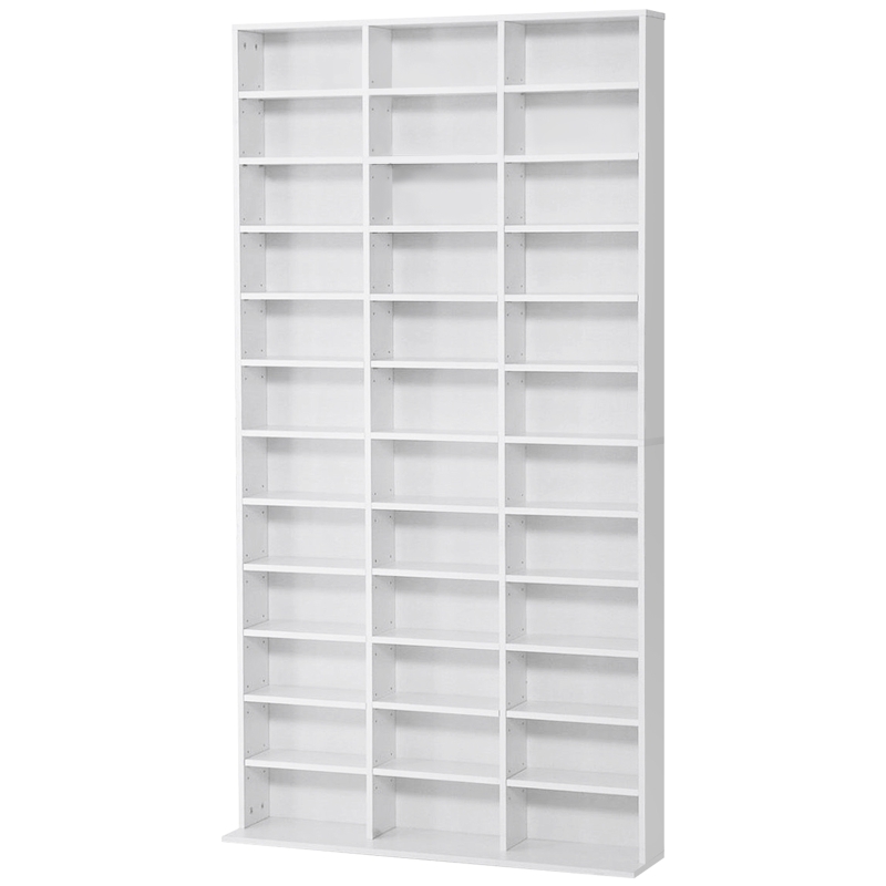 Elegant contemporary style bookcase, ideal for installation in the interior space of your choice: living room, bedroom, office, entrance hall, etc. || Large storage space for up to 1116 CDs or 528 DVDs || 33 height-adjustable compartments: possibility to install some of the shelves according to your needs || Designed and manufactured from sturdy material (MDF board compliant with E1 grade ) for long-lasting use || Overall dimension: 195H x 102W x 23.5D (cm)