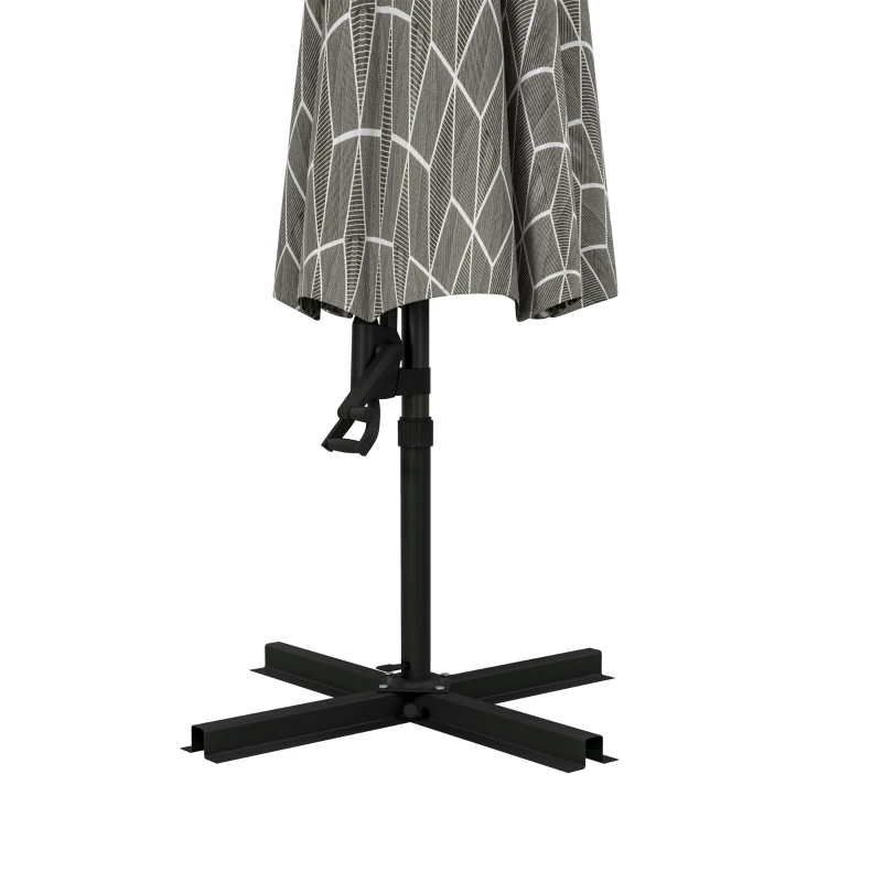 2-in-1: Switches between offset parasol and centre-post parasol. || 360° rotation: Controlled by foot pedal to move the large garden parasol canopy to whatever position you want. || Crank handle: Open and close this garden umbrella parasol in seconds. An easy-to-turn handle. || Steel frame: Tough structure supports this large garden parasol properly. Eight ribs connect to the canopy for extra support. || Dimensions: Canopy: Φ292cm, Height: Centre post: 265cm. Offset: 253cm. Assembly required. Cross base included – weights required.