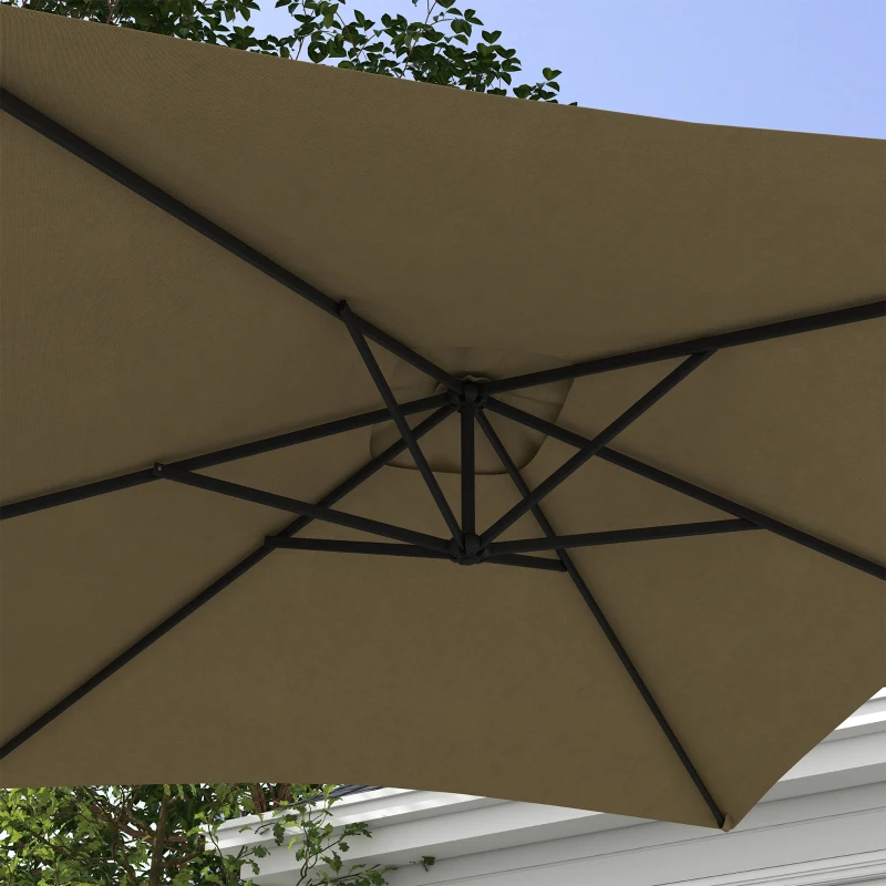Best 3m Square Canopy Cantilever Parasol, with Cross Base – Brown