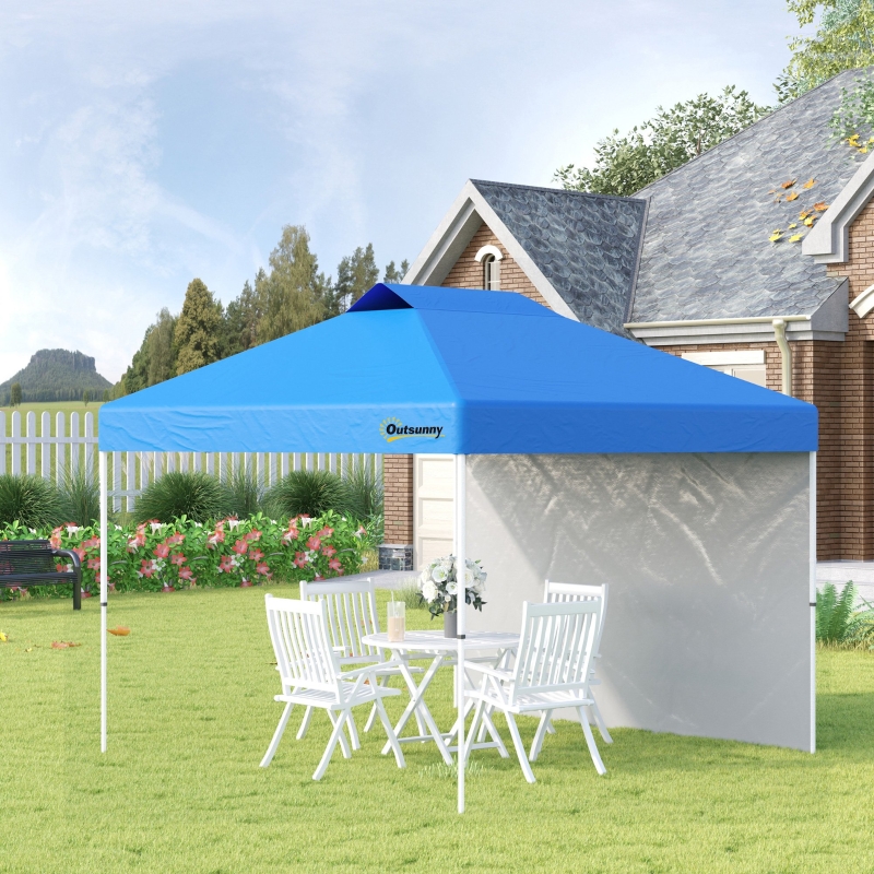 Portable & pop-up: Our garden gazebo offers ample space, a quick setup, and a convenient way to carry it away. Just expand the frame, add the cover & click its legs in place, and latch the side. It’s a fast and easy option for almost instant shade and comfort. Wheel it where you want it; the carrying bag fits in the car’s boot and lets you bring it camping, cookouts, or backyard barbeques. || A wall design: The camping gazebo is a mix of an open and closed design – creating a safe shelter that doesn’t feel too cramped with all your guests standing. || Custom height canopy: Easily customize the height of your garden shelter to fit the occasion. Our garden tent has height-adjustable legs that lock in place at the push of a button. Raise or lower your pop-up canopy between three height settings: 284/274/264cm. || Sturdy & stable: Included guy ropes and ground stakes to help your canopy tent resist the wind. Its frame is made of powder-coated steel, resistant to rust, chipping and peeling. || Overall dimensions: 284H x 300L x 300Wcm. Folded size: 126H x 19L x 19W cm. NEVER leave your shelter unattended; take it down before a major storm rolls through. Always use your pop-up gazebo’s included stakes and the guy ropes. 2-3 people required to build it.