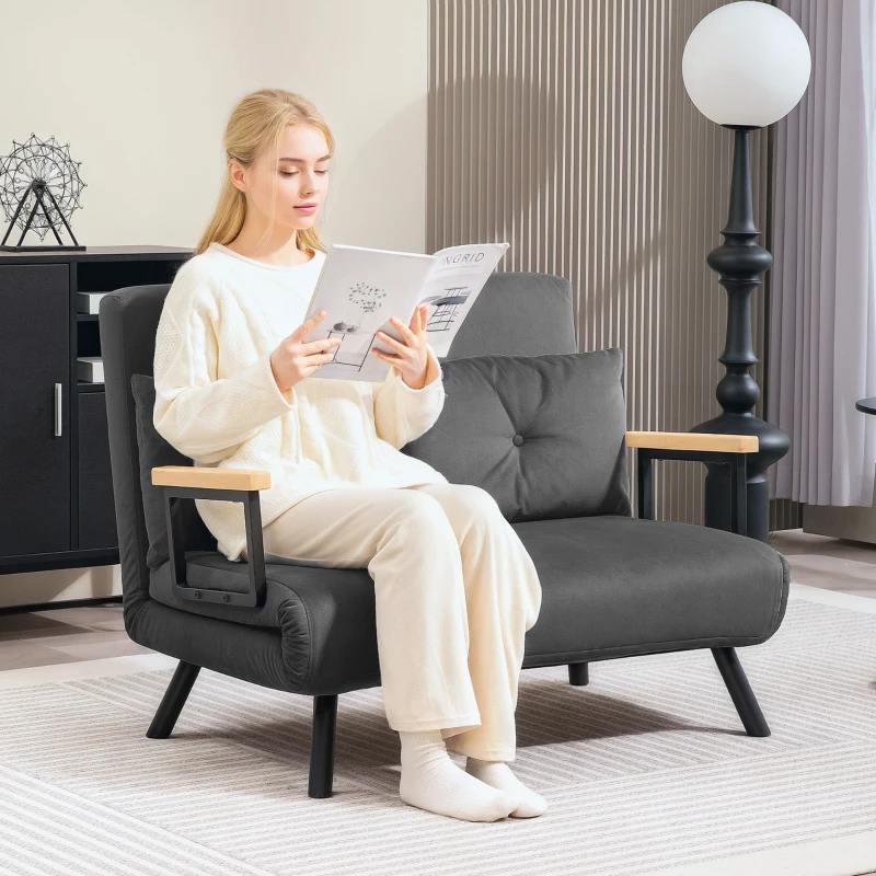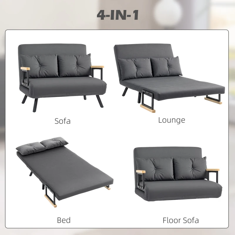 Best 4-in-1 Velvet-Feel Double Sofa Bed, with Pillows – Dark Grey