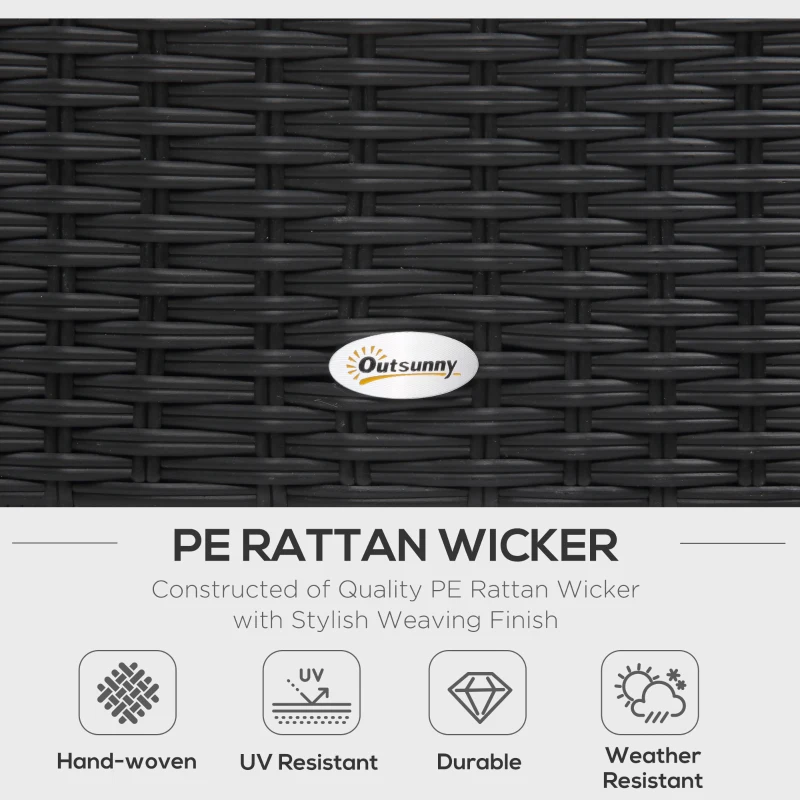 LUXURIOUS FOUR-PIECE SET: The rattan corner sofa includes two loveseats with attached end tables, a corner seat and a square table. The grey rattan sofa set can be arranged however you wish. || MADE FROM PE RATTAN: The metal frame of the garden corner sofa is easy to clean and look after and ensures durability for years to come. || STEEL FRAME: The steel frame of corner garden furniture keeps it stable and sturdy. WOOD GRAIN PLASTIC TOP ON TABLES: The rattan garden furniture sets are finished with a sprayed treatment, it can be looked after easily. || COMFORTABLE: The seats of the garden rattan furniture sets are with thick padded cushions provide hours of comfort and support. || DIMENSIONS: Table: 84W x 84D x 30Hcm. Corner seat: 84W x 84D x 73Hcm. Loveseat: 165W x 84D x 73Hcm. Loveseat seat: 125W x 68D x 30Hcm. MAXIMUM WEIGHT CAPACITY: Table: 80kg. Corner seat: 160kg. Loveseat: 320kg. ASSEMBLY REQUIRED.