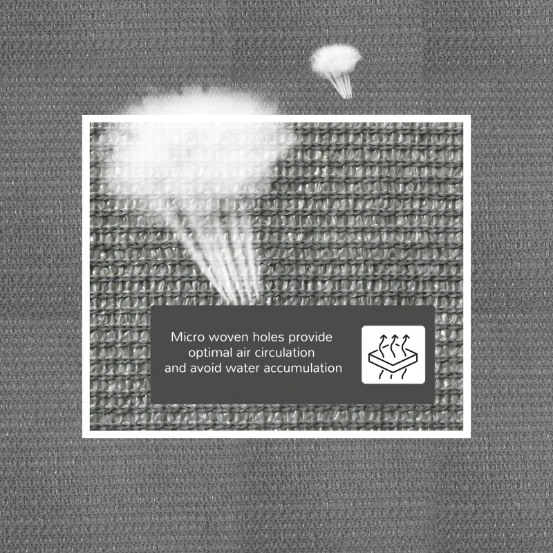 EASY OUTDOOR SHADE: Sail shade can be set up in all kinds of spaces. Keeps you protected under the sun all day long || SELECTED MATERIAL: Made from 185gsm high-density HDPE with coating, this sun shades for garden will keep you protected underneath from direct sunlight and damaging UV rays. Reduces heat exposure to keep you cool || STAINLESS STEEL RINGS: Fitted on each corner, with double reinforced seams – attaches to the chosen area without the material ripping. Slots easy onto poles too || DIMENSIONS: 4L x 3W m. Rope: 2.5 m. Measure your designated area before purchase. ASSEMBLY REQUIRED || Installation tips: Rope included, the cloth surface needs to be inclined, and this garden sail canopy can be installed on poles, trees, or walls; Measuring tips: Please measure the actual size before buying, and preserve space of 0.1-0.5 m between the D ring of the sunshade sail and the installation point. The product isn’t rainproof, water will penetrate in rainy days.