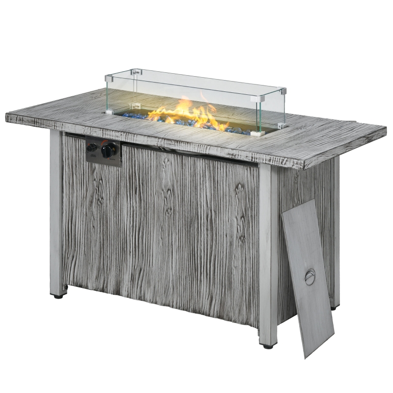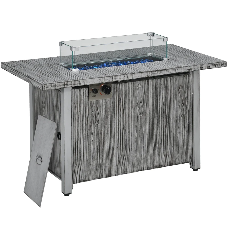 Best 50,000 BTU Gas Fire Pit Table with Cover and Glass Screen – Grey
