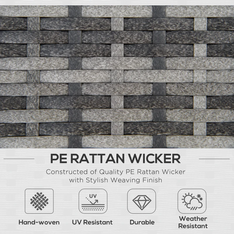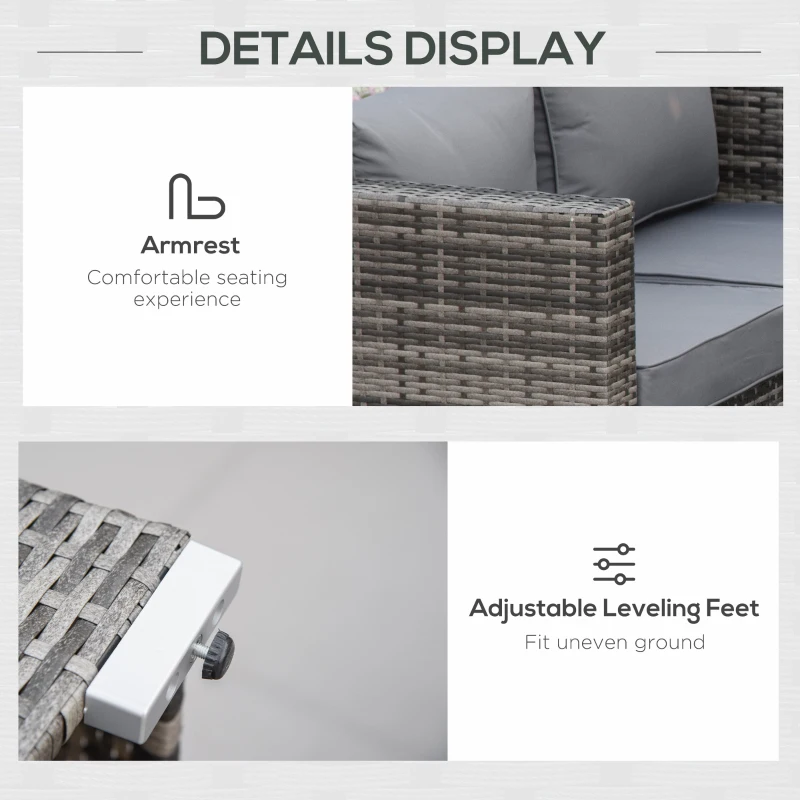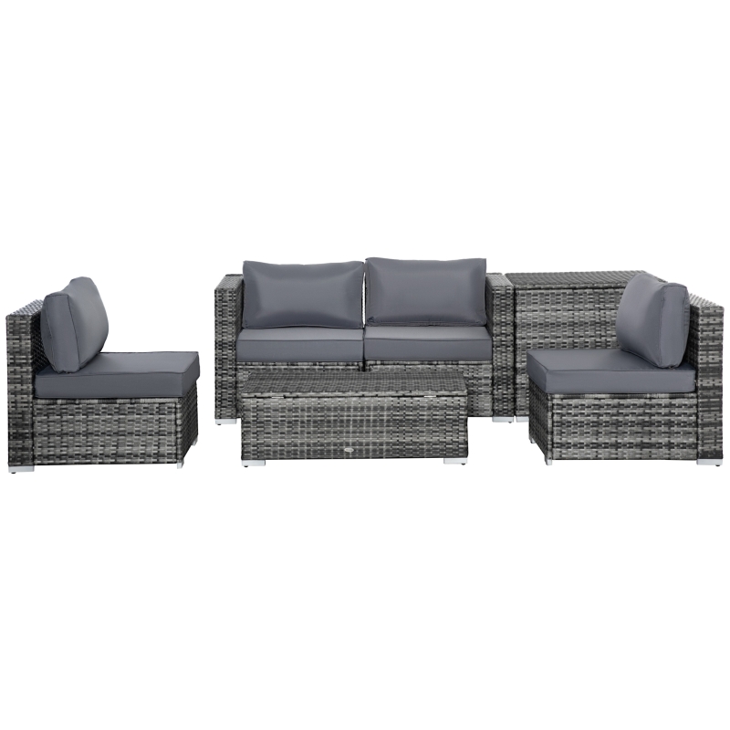 SIX-PIECE SET: The set consists of 2 corner seats, 2 single seats, a side table and a coffee table. Storage function is designed in two tables to keep cushions, pillows and other accessories. || COMFORTABLE: Thick padded cushions on each seat ensure hours of wonderful relaxation. Covers can be removed and washed to keep them clean. || METAL WRAPPED IN RATTAN: Powder coated, rust-resistant steel ensures a strong and stable base, with the PE wicker making it sturdy, durable, easy to clean and resistant to light water damage. || DIMENSIONS: Single Sofa: 66H x 60W x 70D cm. Corner Sofa: 66H x 70W x 70D cm. Side Table: 66H x 70L x 70W cm. Coffee Table: 32H x 95L x 55Wcm. || MAXIMUM WEIGHT CAPACITY: Sofa: 160 kg (each seat). Table: 30 kg. ASSEMBLY REQUIRED.