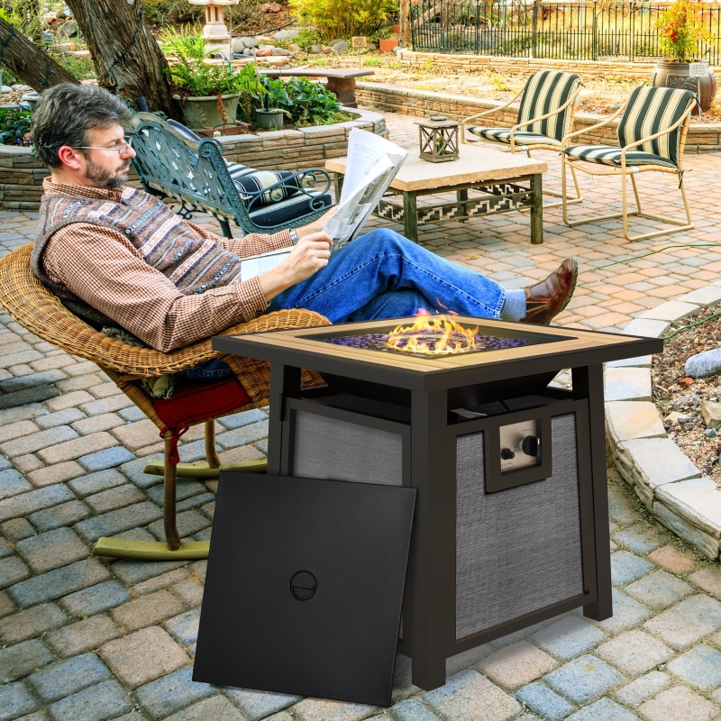 Best 71 x 71cm 50,000 BTU Gas Fire Pit Table with Cover – Grey