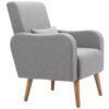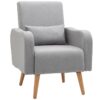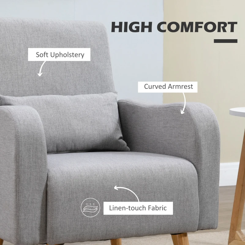 Scandinavian style lounge chair: Simple and soft colour way. The linen-look upholstery and natural-finish wooden legs make it a subtly stylish statement for any home living space. || Padded, with pillow included: A comfortable accent chair – you’ll love sinking into this armchair for long periods. || Wooden legs: Supports this occasional chair properly when you sit and relax. Foot pads gently protect floor. || Versatile: Not just a living room armchair, this small armchair can be used throughout the whole home. || Dimensions: 93H x 72W x 77Dcm. Seat: 52W x 52D x 48Hcm. Maximum load 150kg. Assembly required. Made from flame retardant materials.