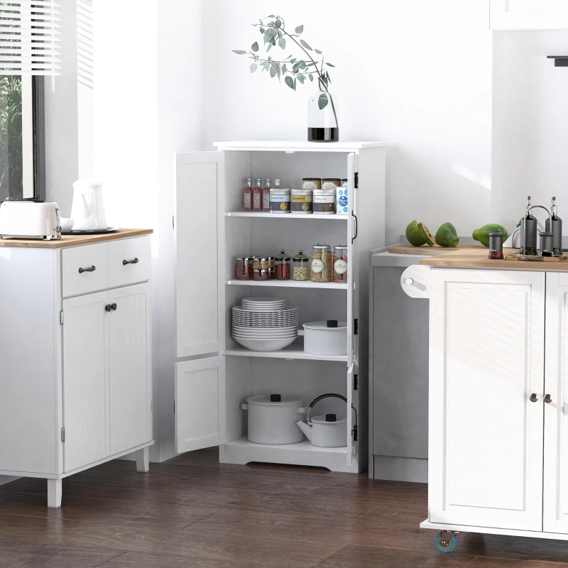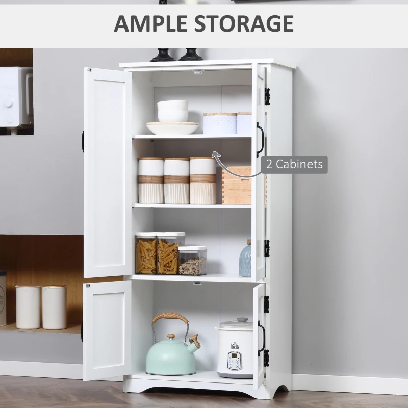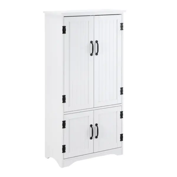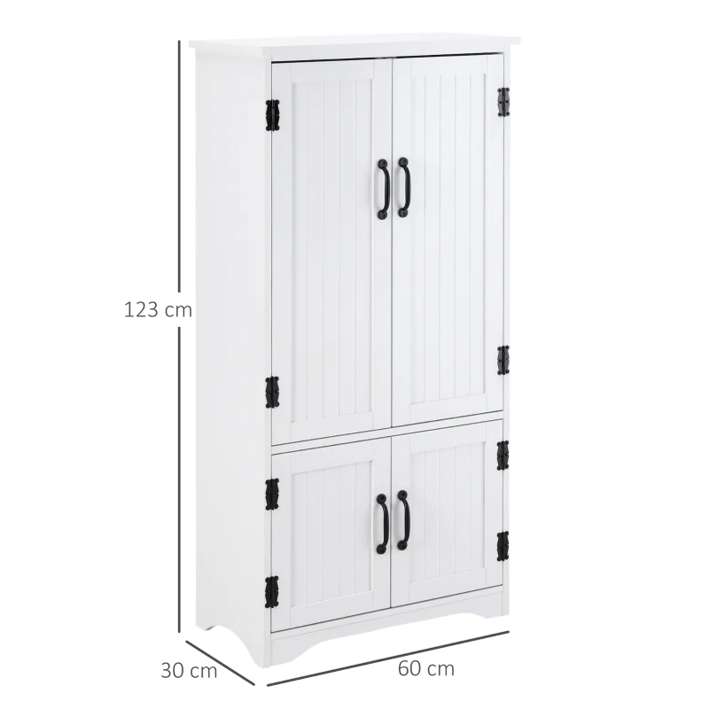CONTEMPORARY DESIGN: The classic design style makes the hutch cabinet a perfect supplement to the living room storage space in your home. It is convenient to place and take out articles at a suitable height, and items can also be placed on the top of the cabinet. || ADJUSTABLE AND REMOVABLE SHELVES: 2 shelves are easy to adjust the height as you need, and you can also remove the shelves to create a larger space for more flexible storage for your corner cupboard. || AREA DIVISION: 4 independent doors are controlled separately, and the upper area is divided into several smaller areas through the partition board, which helps to effectively improve the space utilization rate in the living room organizer. || MULTI-SCENE: The product is suitable for use in the porch, bathroom, kitchen, tool room, etc. Can be used to place plants, books, decorations, food, and other sundries. || DIMENSIONS: Overall Dimension: 60W x 30D x 123H cm; Weight Capacity: 50kg(total); Assembly required