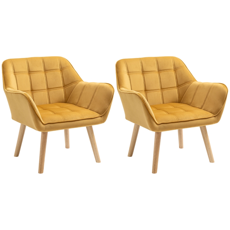 Best Armchair Accent Chair, Vanity Chair with Wide Arms, Slanted Back, Padding, Metal Frame, Wooden Legs, Home Bedroom Furniture Seating, Set of 2, Yellow
