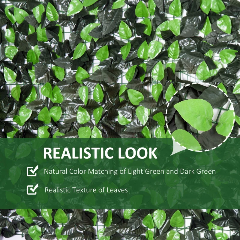 Realistic: Artificial leaves look natural, bringing the beauty of nature into your outdoor spaces. Decorative screen for privacy to your garden. || Durable: Made from plastic for prolonged use. Suitable for use all year around. Vibrant green colour will not fade in the sun and rain. || Customisable and easy to install: Screen can be cut to a shape and size you want. Woven into criss-crossed mesh screen to set up easily. || Portable: Rolls up to store easily. Lightweight – it’s easy to carry. || Dimensions: 100H x 300Lcm. Note: After installation, please take a few minutes to arrange the leaves to make them more even, enhancing aesthetics and privacy.
