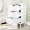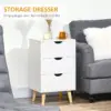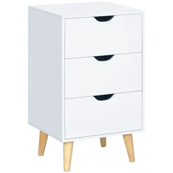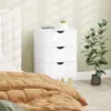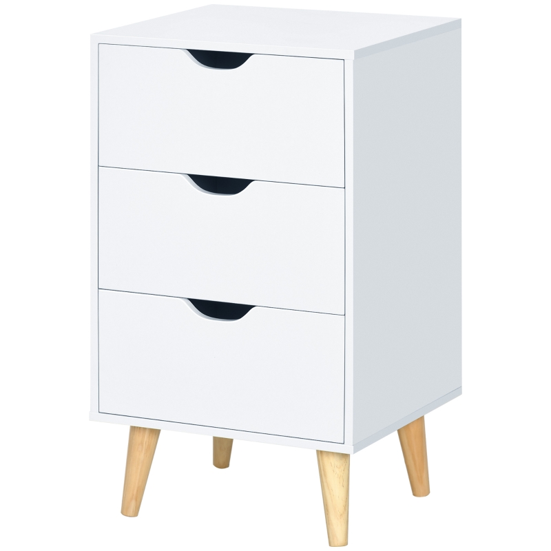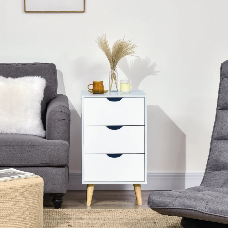 Three drawers: Cream bedside table offers good amount of room for keeping clothing and other bits stored and organised. Groove handles to open and close each drawer easily. || Flat tabletop: Bedside table with drawers has extra room, for storage and display. || Wooden legs: Strong support for this small bedside cabinet. || Anti-tipping straps: Attach this nightstand to your wall, so it doesn’t fall forwards || Dimensions: 68.5H x 40W x 35Dcm. Drawer inner: 10.5H x 32.5W x 28.5Dcm. Maximum load 35kg. Assembly required.