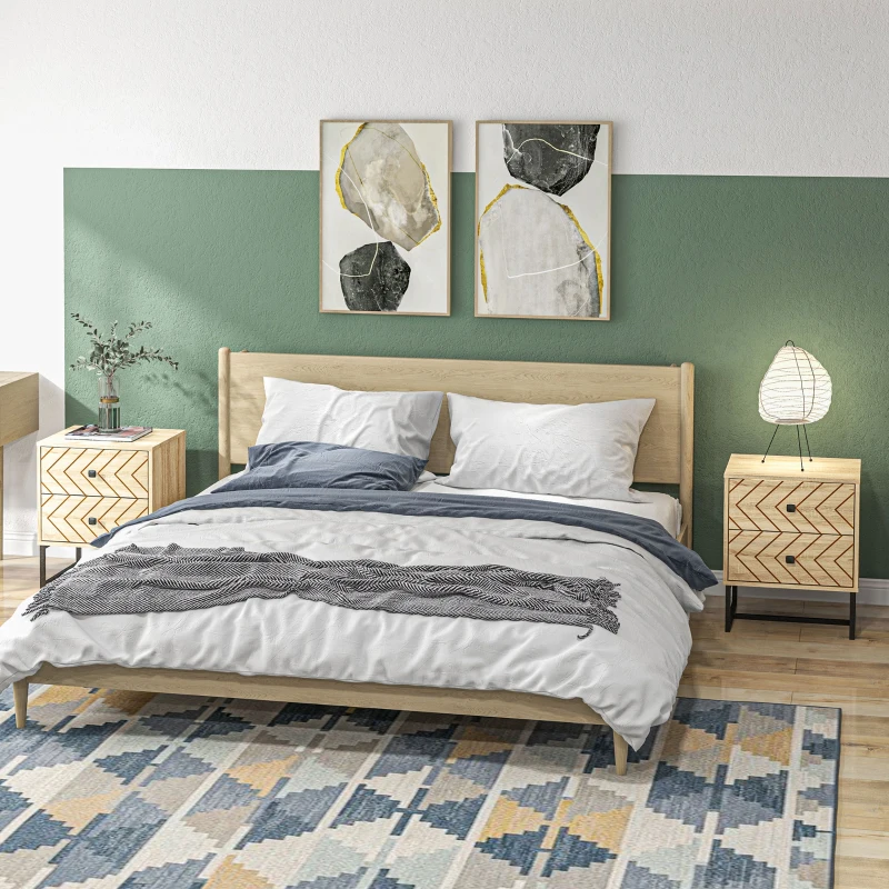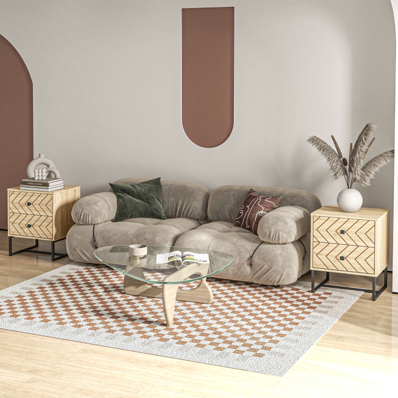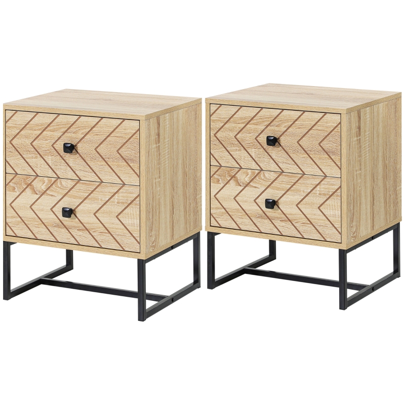 Spacious: Features two drawers that are ideal for storing books, pyjamas and any other bedtime items. || Unique design: Zig-zag design adds an interesting touch to your furniture collection. Sturdy construction: Made from a blend of MDF and particleboard for durability and reliability. || Elevated base: Made from metal to keep unit stable and sturdy, helping to prevent daily damage. Easy to maintain: Smooth and protective melamine surface ensures the unit can be cleaned easily. || Dimensions: 60H x 48L x 39.5Wcm, Drawer inner: 11H x 39.5L x 28.5Wcm. Base Height: 18cm || Maximum weight capacity 25kg. Assembly required.