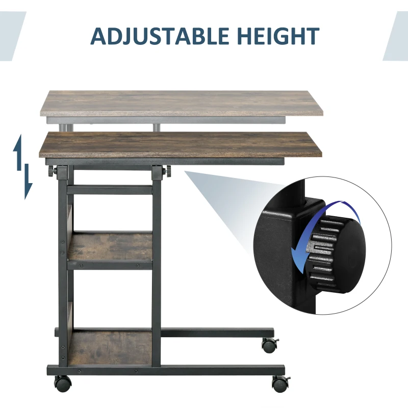 UNIQUE C-SHAPE DESIGN: Unique C-shaped design make the rolling table ideal for various occasions. It can be a bedside table, sofa side table, mini bar cart, mobile garden and etc || ADJUSTABLE HEIGHT: The adjustable height of this sofa side table with wheels means it can fit different beds and sofas, satisfying your personal need || STURDY CONSTRUCTION: The metal frame and particle board mean this rolling coffee table is balanced, with sturdy construction for durable use || EASY MOBILITY: 4 smooth-rolling casters with 2 locking brakes make this side table organizer super simple to move and relocate throughout the house || DIMENSION: Overall Dimension: 80L x 40W x 72-82H cm. Max Load: 20kg (Tabletop), 2.5kg (Each Shelf). Assembly required.
