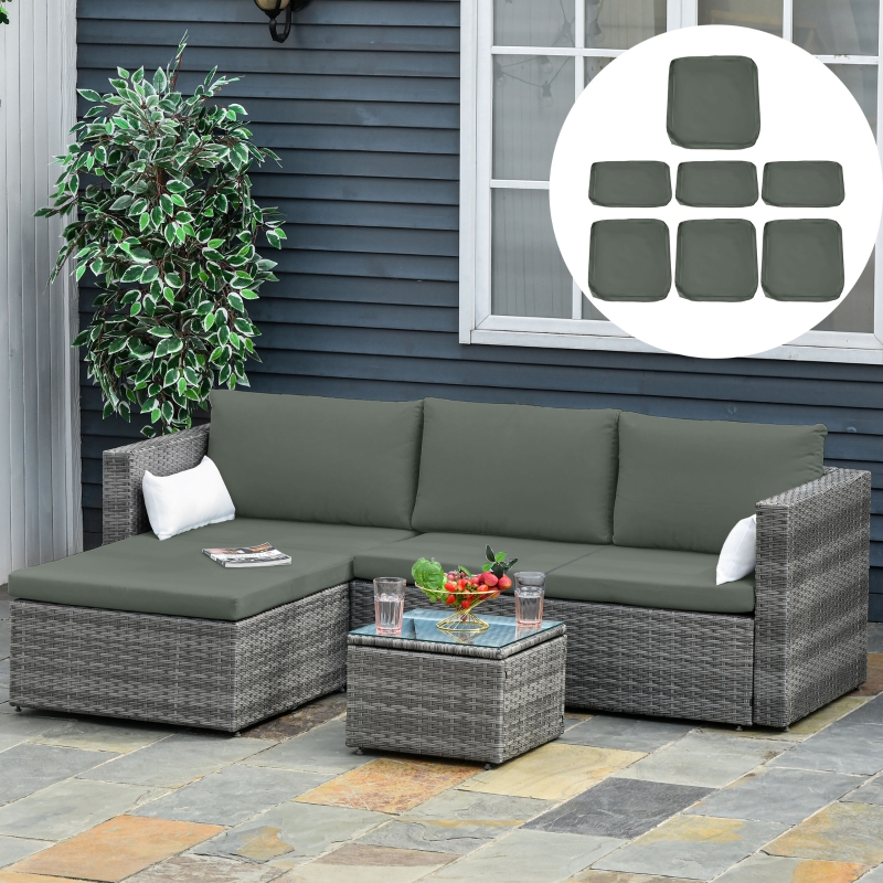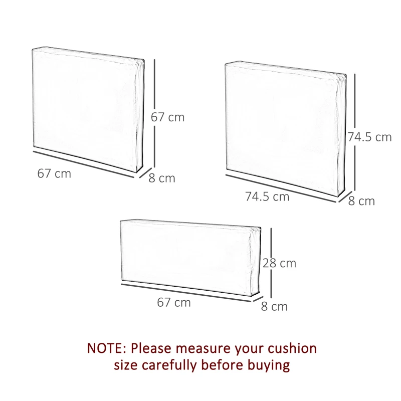 PACK OF 7 CUSHION COVERS: Beautiful colour, pack includes 4 seat covers, 3 cushions cover. The perfect revamp for your outdoor dining set this season, || POLYESTER SHELL: Tough and durable for longevity, each cover can be machine washed to easily keep them clean and fresh. || ZIP FASTENING: Placed on the sides, allows you to put on and take off the inner cushions easily, securely keeping them on when zipped up. || NOTE: Please measure your sofa cushion size before buying ( Max Cushion Thickness:8cm, not included).Suitable for rattan furniture B078W3QR3S,B079JT4MVK,B079JR72CM || DIMENSIONS: 3 Small Seat cushion: 67L x 67W x 8Tcm. 3 Back cushion: 67W x 28H x 8Tcm. 1 Big Seat cushion: 74.5L x 74.5W x 8Tcm