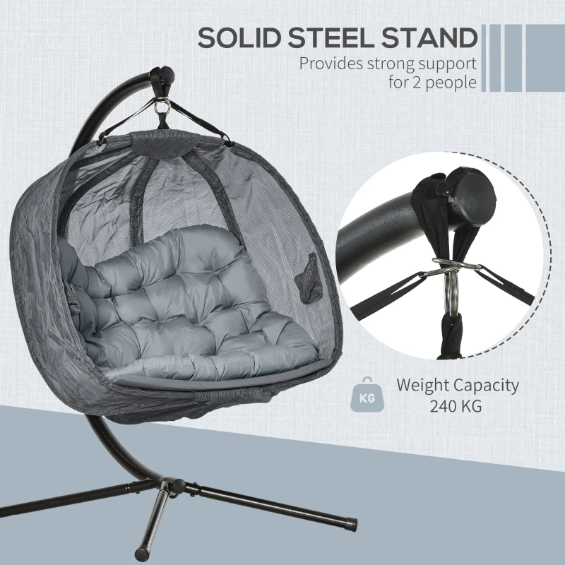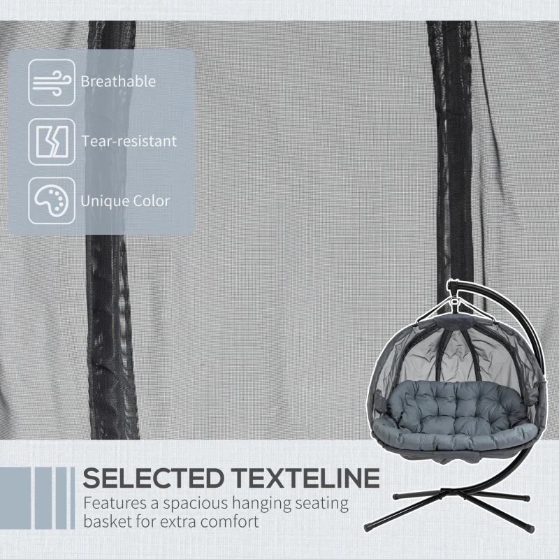 Best Double Hanging Egg Chair 2 Seaters Texteline Swing Hammock Chair with Stand, Cushion and Folding Design, for Indoor and Outdoor, Grey