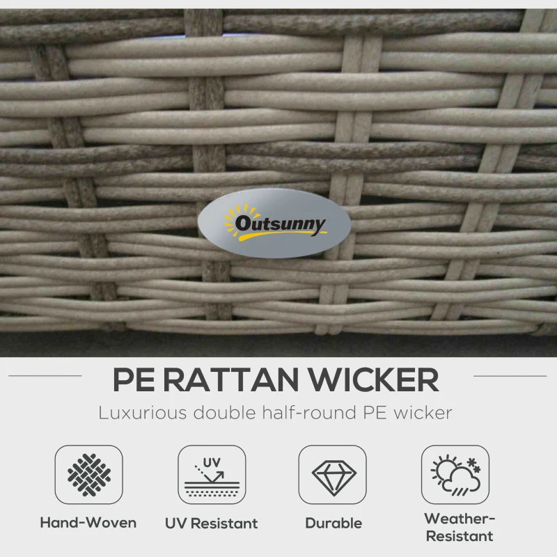 Eight-piece garden sofa set: Comes with two corner chairs, two armless chairs, two footstools and two square tables. Footstools of the rattan sofa set can also be used as extra seats. Seats up to six people. || Comfortable: All seats come with thick cushions, so you can relax into this rattan furniture set properly. Covers are removable and washable. || Space-saving: Footstools fit under the tables. Armless chairs fitting into the corner chairs. Saves space when not in use. || Steel, wrapped in rattan: Powder coated metal for a strong core. Plastic wicker creates a durable and protective shell, whilst adding garden style. || Dimensions: Corner chair: 71H x 75L x 75Wcm. Armless chair: 67H x 71L x 68Wcm. Footstool: 30H x 52L x 48Wcm. Table: 36H x 55L x 55Wcm. Maximum load: Single seat: 160kg. Table: 70kg. No assembly required.