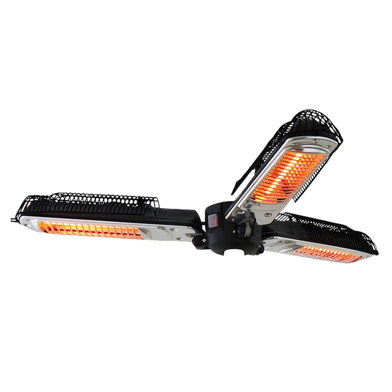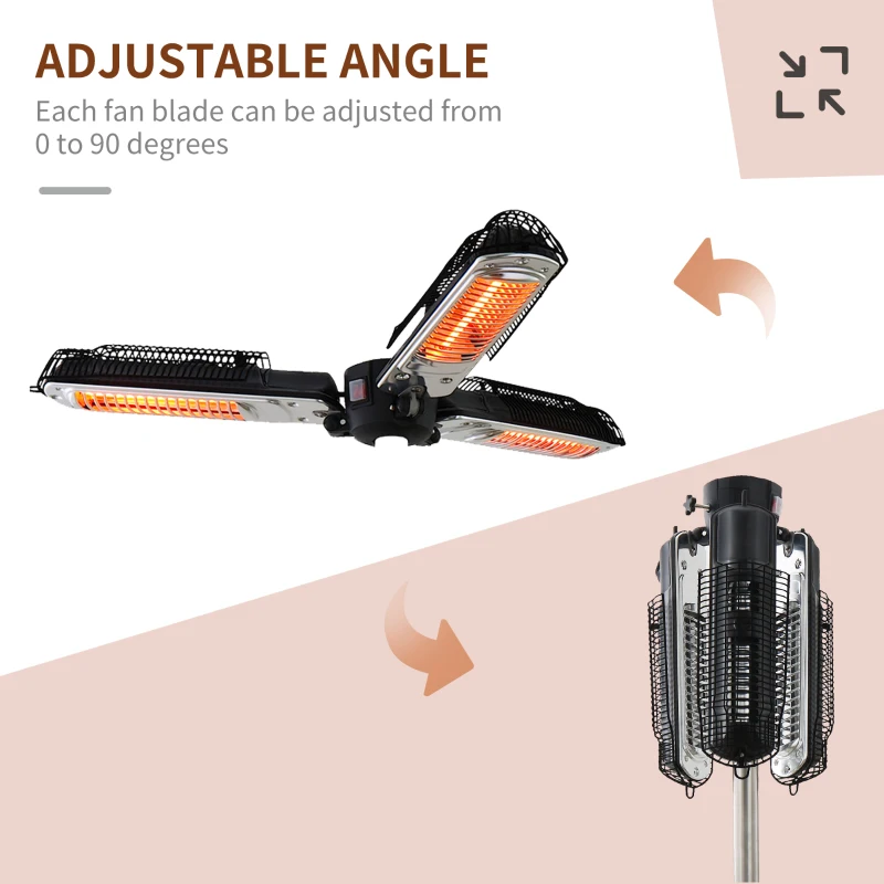 ON-PARASOL DESIGN: Made to attached to your outdoor umbrella, this electric patio heater will keep you warm and cosy when evening gets cooler. For pole sizes: 25-60mm. || THREE HEAT SETTINGS, 9-10㎡ AREA COVERAGE : 650W, 1300W, and 2000W – easy to set to a temperature you like – great for early evenings and later nights. Area radius of the outdoor electric heater is great for family and friends. || SAFE TIPPING SHUT-OFF: If parasol falls, outdoor heaters for garden turns off – no potential accidents. || 0-90° ADJUSTABLE: All three blades can be individually adjusted, our garden heater is easy to set warmth to a direction you want. || DIMENSIONS: Overall Dimension: 10.5H x 100L x 100Wcm.