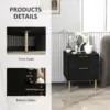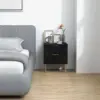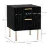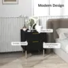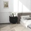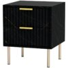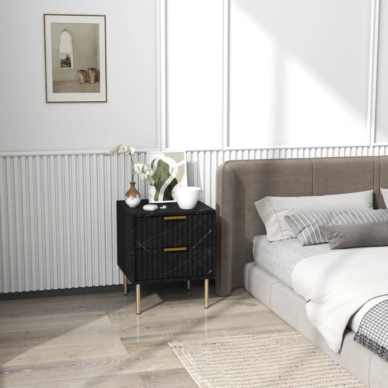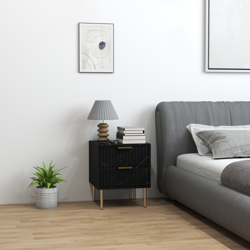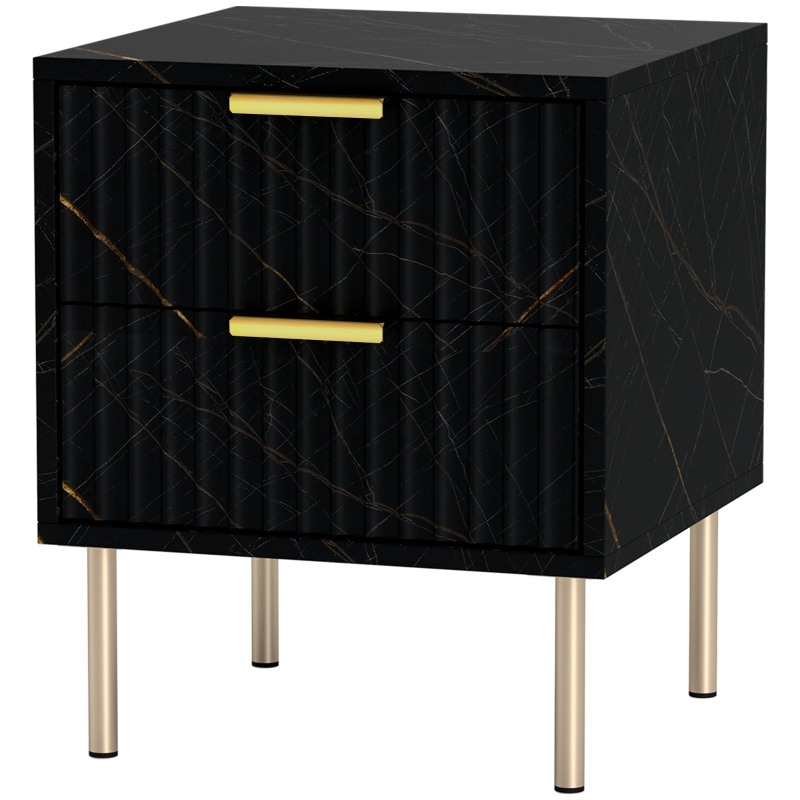 Elegant design: A marble effect pattern all over, with gold-coloured accents – nightstand brings a beautiful touch to your living room and beyond. || Two drawers: Black bedside table offers storage for your the bedtime essentials. Keep items conveniently close to your bed. || Sturdy: MDF and particle board blend structures – small bedside cabinet is made to be used everyday. Smooth and protective veneered coating. || Steel legs: Strong support for this small bedside tables. Elevates the table to make it easy to clean underneath. || Dimensions: 48H x 40W x 39D cm. Maximum load 20 kg. Assembly required.