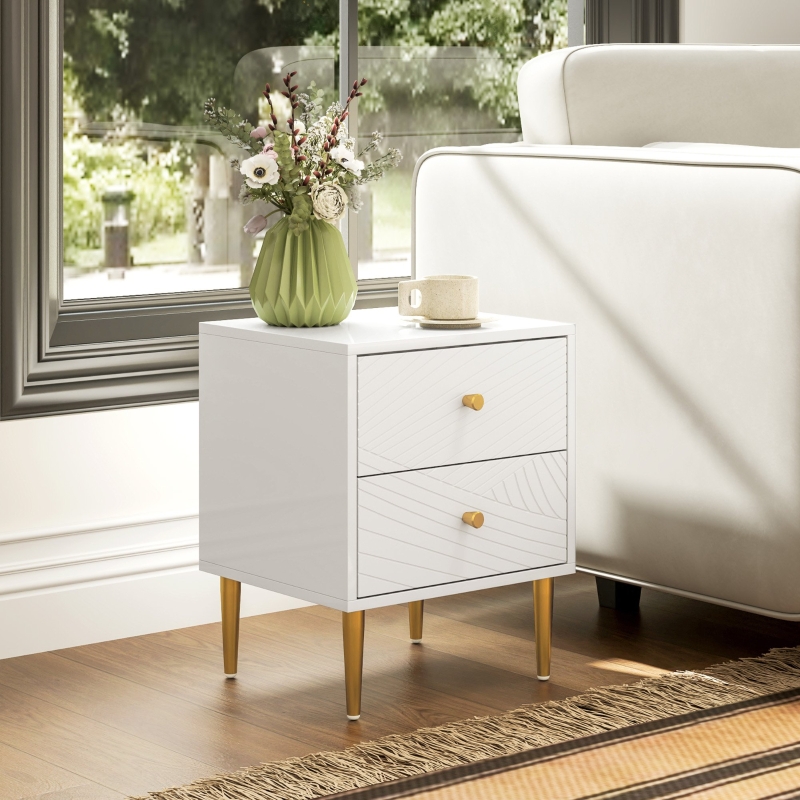 Best Elegant Two-Drawer Bedside Table – White/Gold-Tone