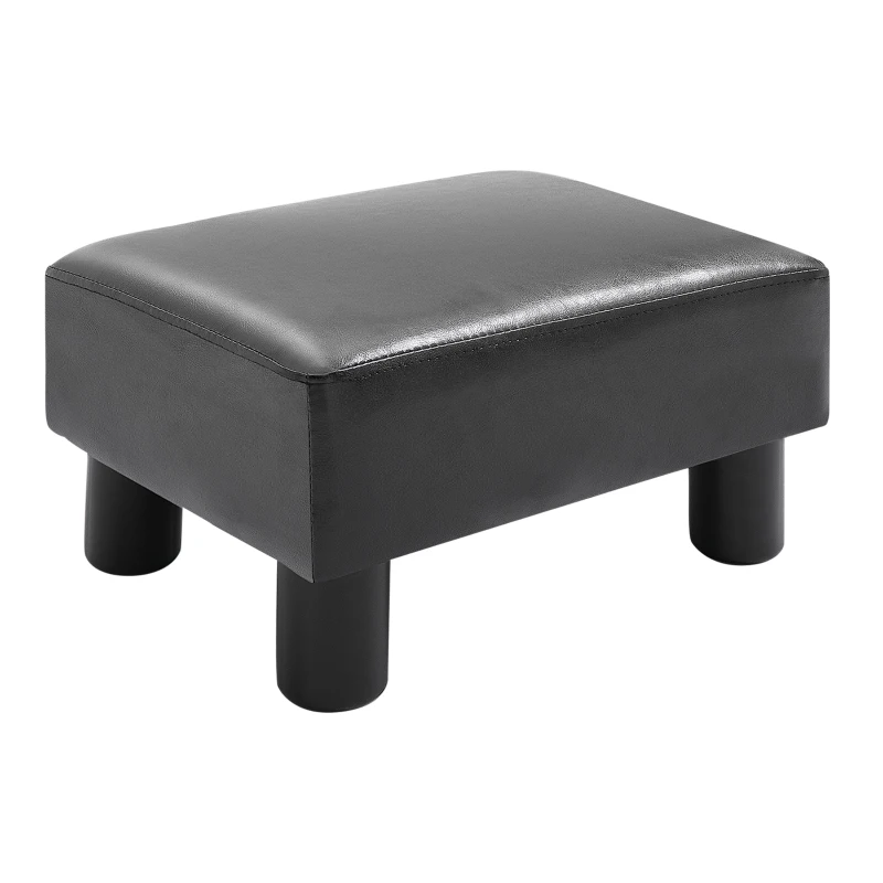 Stylish design: A great addition to your home, a small footstool easily matches other furniture – or can be used by itself. || Comfortable: Bedroom stool is filled with sponge. Sit on it or rest your legs – great either way. || Faux leather upholstery: Sleek and stylish. Wipes clean easily. || Wooden frame: A strong and supportive core for this footrest. || Dimensions: 24H x 40L x 30Wcm. Maximum load 100kg. Assembly required.
