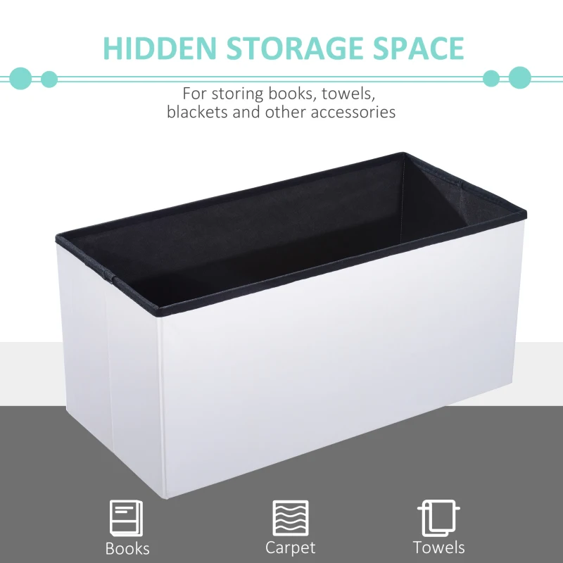 It can be used as a footstool and storage multifunctional and would compliment any room in your home || Collapsible design makes it easy to store, really space saving || With a wooden frame construction to give it strength and stability || Well cushioned and padded top for a comfortable touch || Overall Size: 76L x 38W x 38H (cm); Weight Capacity: 150kg