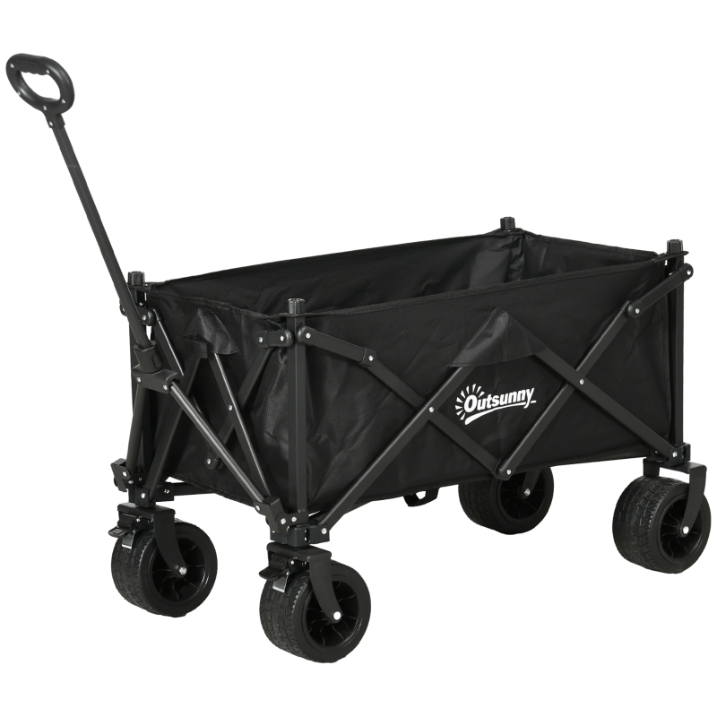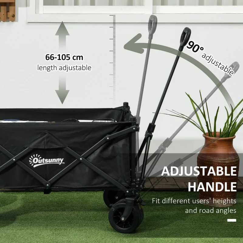 Best Folding Garden Trolley, Outdoor Wagon Cart with Carry Bag, for Beach, Camping, Festival, 120KG Capacity, Black