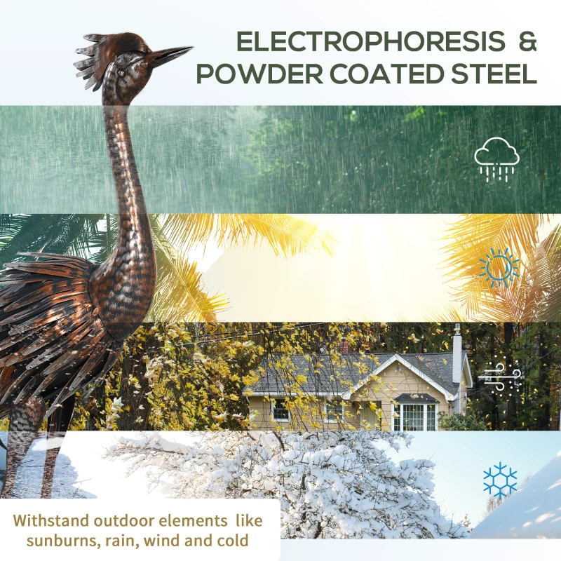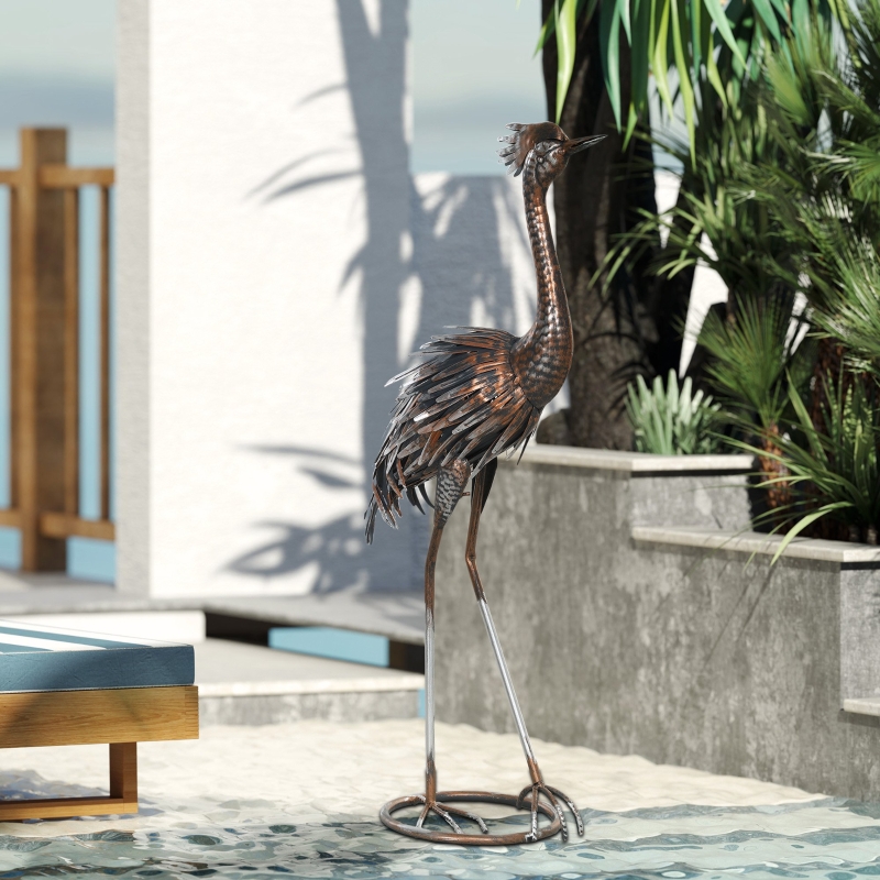 Vivid heron in graceful pose: The heron add chic and retro elegance to your garden decoration, with each feather featuring lifelike texture and vibrant, hand-painted gradient hues || Outdoor ready: Made of metal with electrophoresis and powder coating, our garden statue resists sun, rain, wind and cold. It’s tough, fade-resistant and brighten your garden for years || Stable standing: Designed with circle feet and two U-shaped ground stakes, the heron sculpture is stable and less likely to be knocked over when used as a outdoor decor, a patio decor, or as a garden decor || Versatile use: Let this ornament welcomes you home every day and surprise your guests. It makes a fun garden ornament for yourself or gift for mum or the bird lover in your life || Overall Dimension: 31W x 18D x 71H cm; Easy to assemble without tools