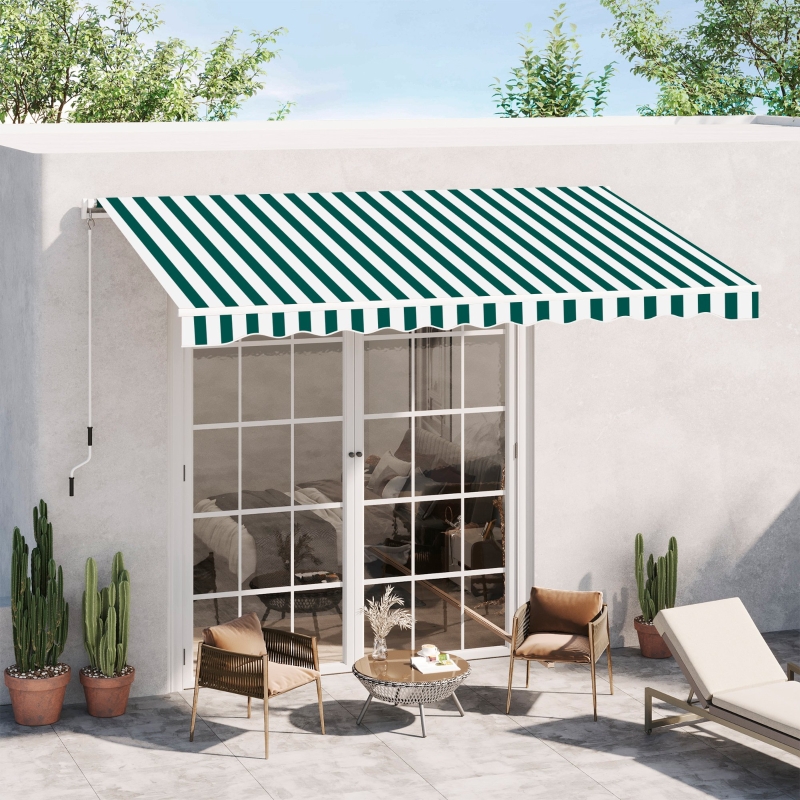 Best Manual Retractable Awning, size (3.5m x2.5m)-Dark Green/White Stripes