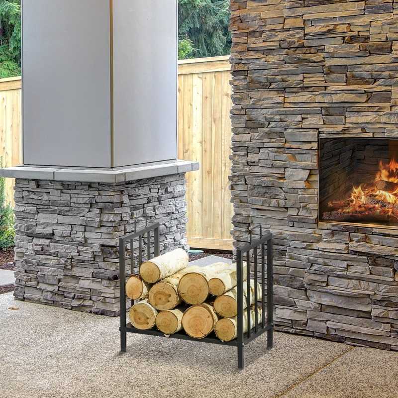 ELEVATED DESIGN & SPACE-SAVING: The outdoor firewood rack has an off-the-ground design that allows wind flow to help keep your wood dry. With compact size, can hold a large amount of firewood without taking up too much floor place || PRACTICAL DESIGN: Our firewood holder is designed with 2 handles, easy and convenient to transport. Simple color and classic look make this metal log holder become special decoration for your outdoor spaces || METAL FRAME: Built with solid metal with black electrostatic powder-coated finish, this log holder for fireplace is rust-resistant and durable for long-time using || INDOOR & OUTDOOR: The log holder basket can store up to 50 kg of firewood neatly, suitable for indoor fireplaces and outdoor fire pits. Ideal for use on your deck, patio, backyard, or home || DIMENSIONS: 39L x 32.5W x 46Hcm, MAXIMUM LOAD 50KG. ASSEMBLY REQUIRED.
