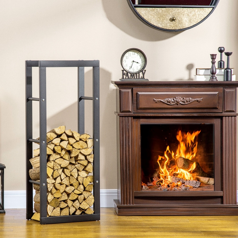 Best Metal Firewood Log Holder Tall Firewood Rack Indoor Outdoor Fireplace Wood Storage Shelf with Side Rails, Rust-Resistant, Black, 40W x 25D x 100H cm