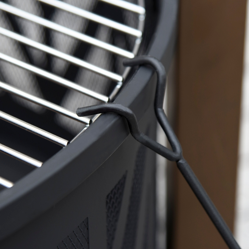 DUO DESIGN: The fire bowls for garden can be used as outdoor fire pits and a BBQ fire pit. Perfect for eating in the day and using as a traditional heater at night for your Summer parties. || LARGE BOTTOM FIRE BOWL: Plenty of holding room for charcoal to produce an abundance of heat – keeping you warm for extended periods and cooking plenty of food at once. || 500 RESISTANT STEEL: A sturdy structure, which can withstand a high temperature for better use. Four feet, attached to the side make the fire pits for garden balance. COOKING GRATE: A place to hold food and protect you from naked flames. || MESH LID: An extra layer of protection, helps smoke food when it’s left on. FIREPIT DIMENSIONS: 60H x Ф78cm. Lid: Ф66cm. || FIRE POKER INCLUDED. ASSEMBLY REQUIRED.